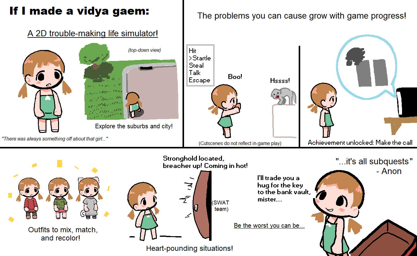 >>959092 Я не тот анон, но выскажу свое мнение. Судя по этим планам ты собираешься вбухать в игру еще год или два. Уверен что эти трудозатраты окупятся? Вон, посмотри на Гомогея с Халвером. У него игра более продающая за счет широкой аудитории и оригинальной фичи с половинками. При том он активно пиарит свою игру даже на дваче. А вот продажи у него вряд ли лучше чем у тебя.