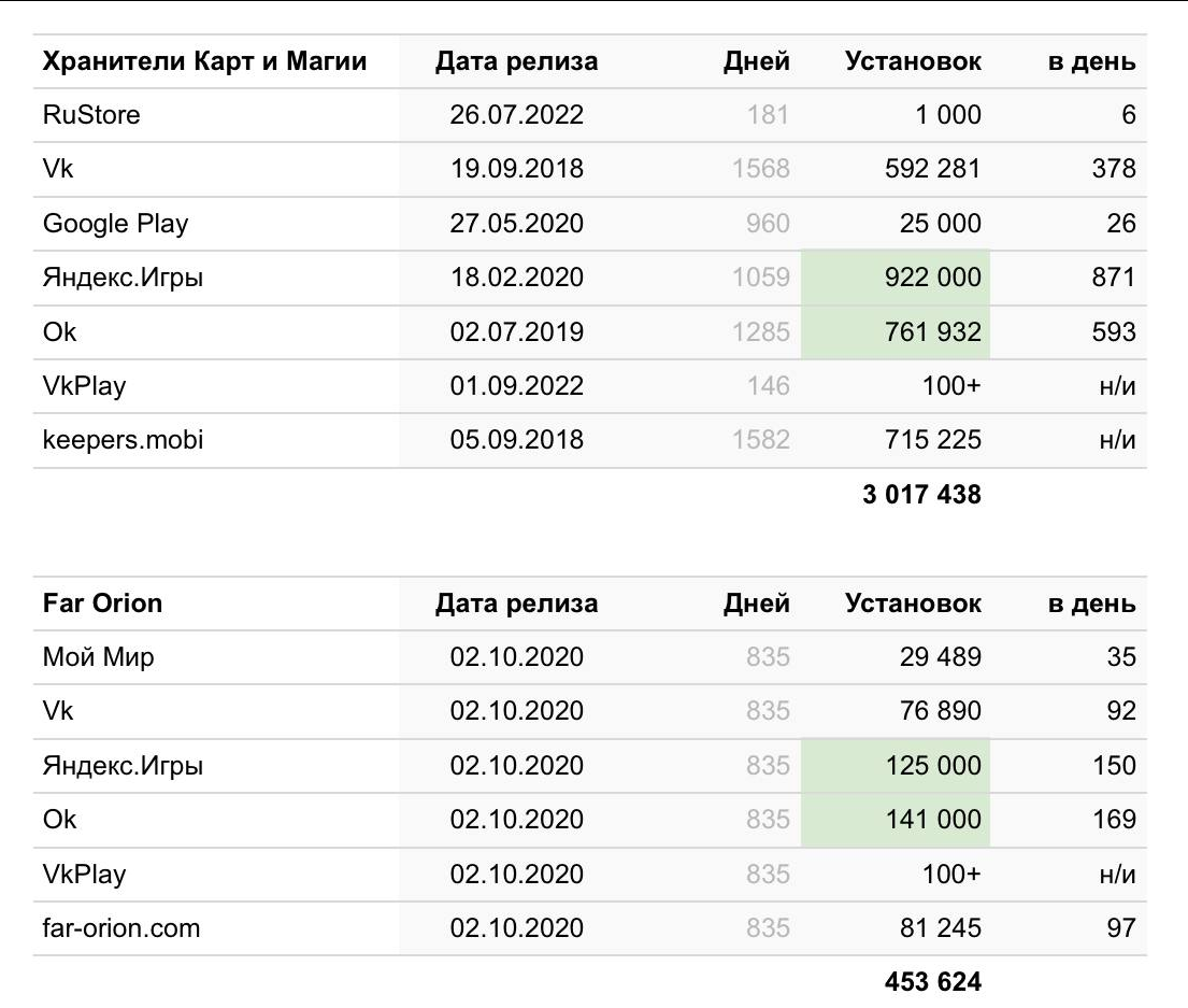 — количество уникальных игроков > 100; — общее время играния > 1000 минут.
