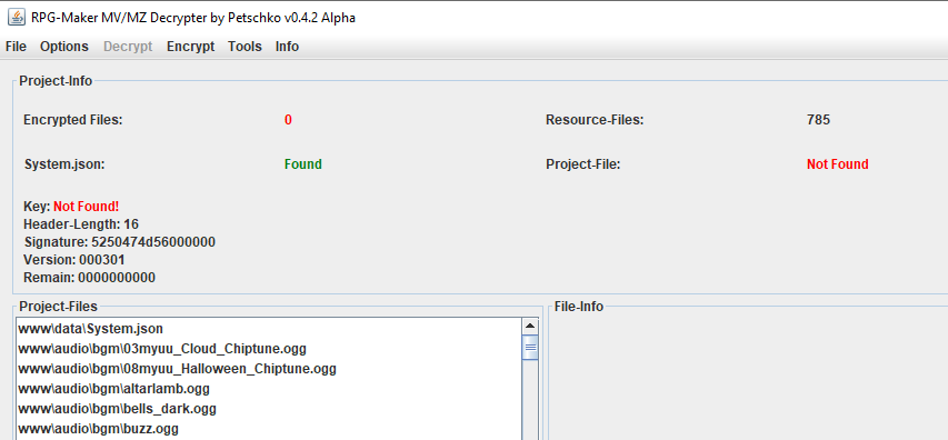 Чем может быть зашифрована музыка в игре, сделанной на RPG Maker и как её вытащить? Игра The Coffin of Andy and Leyley.