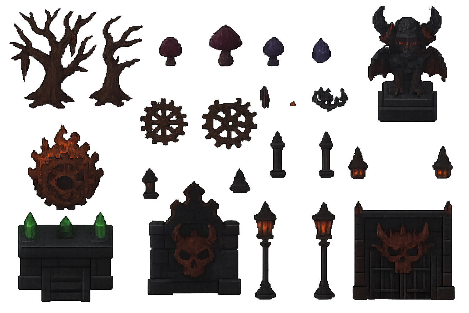 >>1021429 То, что у тебя на первых пиках, можно сделать и из простых тайлов, построцессингом. На первом накинуто псвеводосвещение - лучи. (Вообще говоря, на первом пике довольно много всратостей - например странные елки, под фонарем круглый люк бес перспективы, тени намешаны - где то они направо, под скамейкой строго вниз, под столом с кристалом вообще нет). На втором подобраны неплохие узоры для тротуаров, а из эффектов там есть градиент на крышах и псевдоосвещение перед окнами и дверями. Его можно сделать или наложив полупрозрачную картинку поверх, или обычно делают скрин уровня, загоняют в фотошоп и потом обрабатывают и используют как целую картинку https://www.youtube.com/watch?v=PvXt7BXtzMI