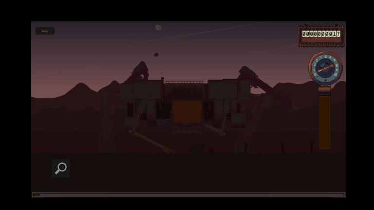 Так вот, ОП, я бы предложил изменить тебе игру как раз по такому принципу. Есть 2 фазы геймплея - Зарядка (то, что у тебя сейчас) и Сражение. В режиме зарядки твой робот плетется по пустоши и ест всяких личинусов, причем можно как самому это делать, либо свернуть игру и тогда робот подзаряжается автоматически, но офк дольше. Во режиме Сражения ты нападаешь на отдельном экране на поселение и начинаешь его сравнивать с землей в поисках лута, апрейдов и сюжета. Сделай все круто: чтобы по физике разлетались человечки и строения, чтобы что-то взрывалось, чтобы клешни блокировали атаки врагов. Советую поиграть в Grabatron (если это возможно, apk-шки вроде в инете лежат), чтобы понять управление, ибо насколько я помню оно там было очень приятное и тактильное, тяжелые объекты чтобы оторвать от земли надо было реально некторое время тянуть в разные стороны.