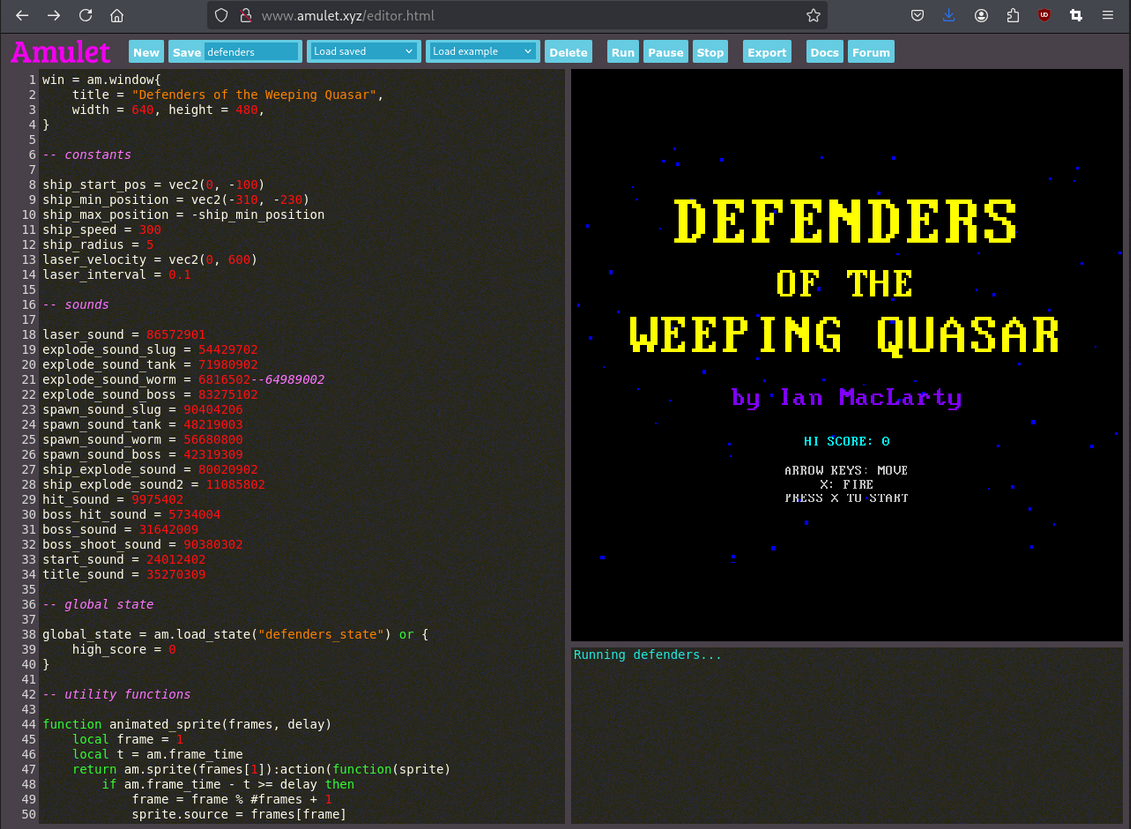 Опенсурсный движок для настоящих профессионалов. Основной язык для скриптов - Lua, широко распространённый в индустрии. Искоробочная кроссплатформенность не только на десктопы, веб и мобилки, но и на консоли - Switch, PS4. Билд пустого проекта под веб занимает меньше мегабайта. Поддерживает WebGL, OpenGL, Vulkan, Metal. Ориентирован на 2д, но умеет и 3д. Модульный и расширяемый.