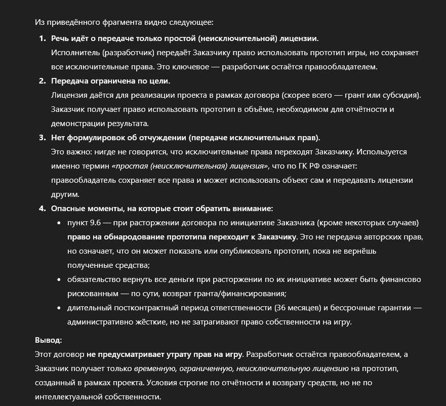 >нейронка сказала, что передачи прав нет, значит это так >профессиональный юрист будет изучать эту бодягу несколько дней Пердикс, портфель собрал на завтра?