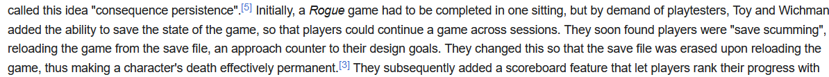 >>941811 Вряд ли. Rogue, породивший рогалики, появился года на 3 раньше, на компьютерах, где нет проблем с сейвами, более того, сейв создавался, чтобы игру можно было продолжить, то есть для пермадефа он явно и осознанным решенеим удалялся.