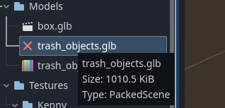 Как понять что не так с импортнутым из Blender GLB-файлом (отображается крестик)? Сама модель при этом в сцене отображается с текстурой, как и положено.