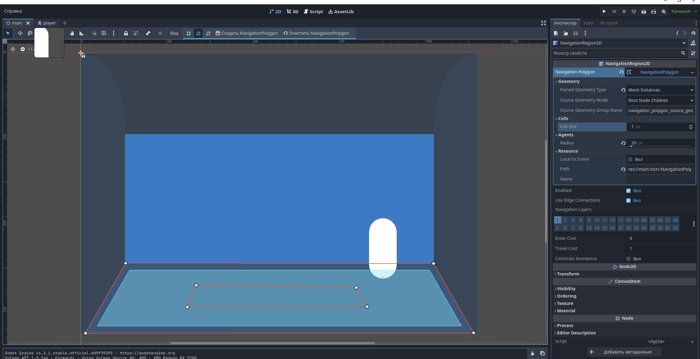Пытаюсь сделать внутри NavigationPolygon пространство куда агенту нельзя заходить. В гайдах пишут что достаточно добавить точки внутри внешней области, но что то не получается. Может кто нибудь пожалуйста подсказать как это делается?