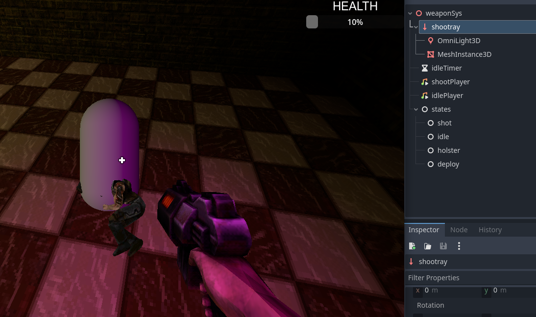 >>945429 https://dropmefiles.com/1rIoc Ну а хули нет, всё равно кидать нечего. Там прикол в чём: добавляешь свет или меш в weaponSys.tscn и по и тогу когда запускаешь testLvl.tscn - их не видно, а ноды существуют.
