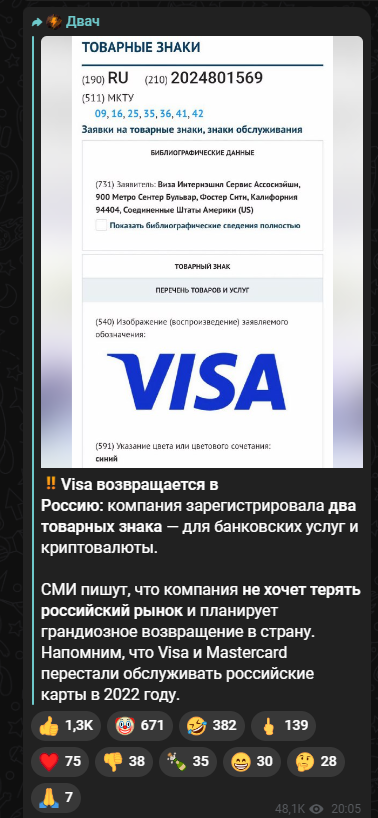 >>974209 Не знаю что ты пытался сказать, зарегистрировать торговую марку стоит копейки (около $100), откуда там фантазии журналистов про возвращение, лол. Можно наоборот разные приколюхи устраивать, например стричь бабки с тех, кто не убрал логотипы со всяких касс или вывесок.