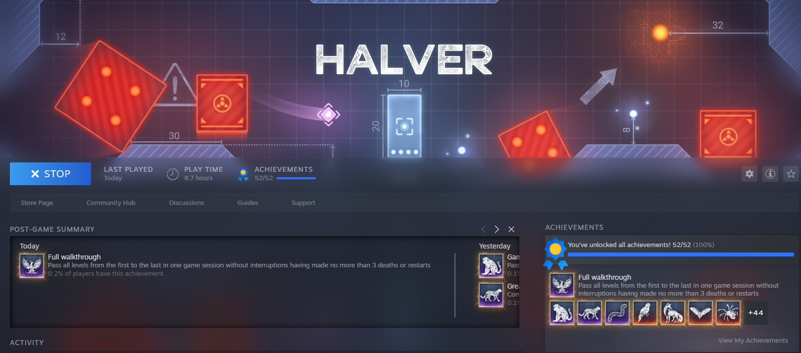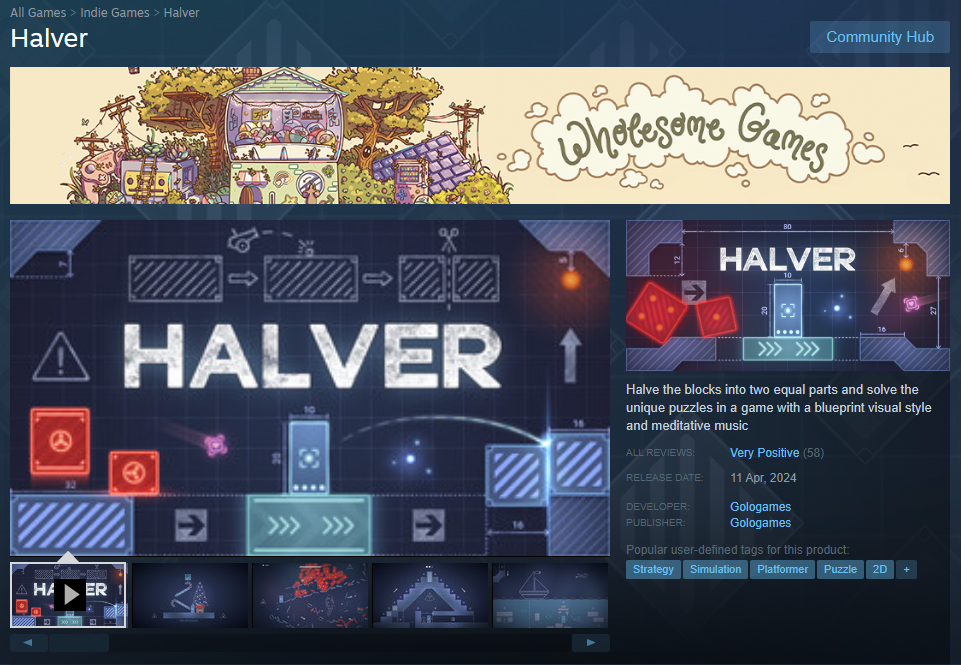 Halver — это захватывающая, основанная на физике, головоломка-платформер с большим количеством логики и прыжков на точность. Главный герой может разделять выстрелами блоки пополам, чтобы решить загадки и добраться до выхода с уровня