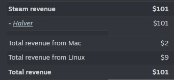 >халвер не особо выстрелил? Если ты будешь как и все новички мерить банальным вопросом СКОКА ДЕНЯК, то это вообще не про эту игру. Это было понятно примерно через год разработки (т.е. 2018 году). Почитай треды, было много хорошего, победы в конкурсах, показали по телевидению, сотни стримов. Я результатом доволен, ожидал меньшего