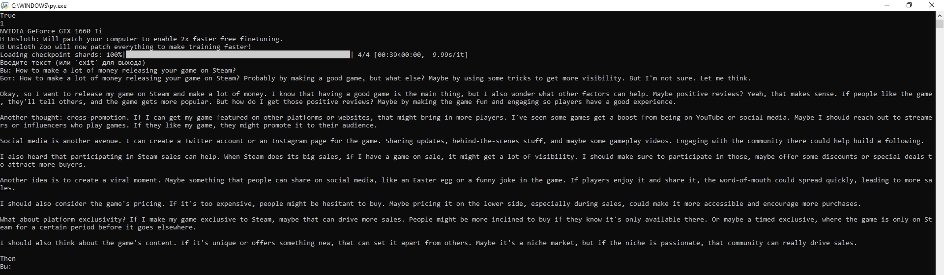 Опуская детали, всякими трюками и хаками удалось всё это добро завести и вот теперь могу общаться с надмозгом бесплатно без смс не снимая свитер прямо со своего ноутбука на котором стоит всего-то 1660 Ti с 6GB видеопамяти