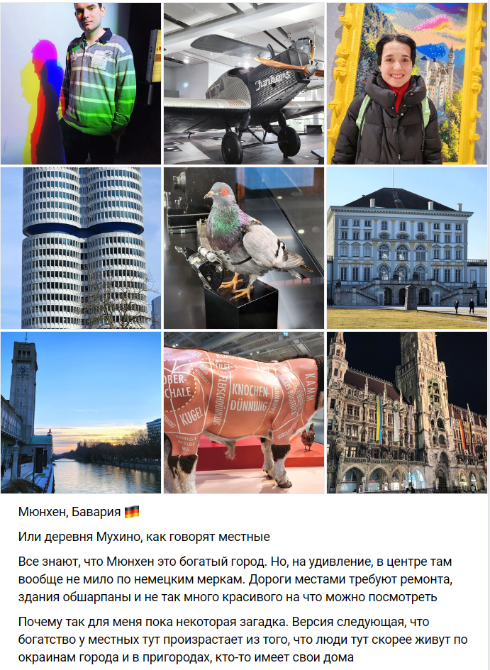 Для изучения мира было полезно, потому в Гамбурге например всё-таки много красоты в центре, как и в Берлине её можно найти. А Мюнхен видимо это природа, домики, семейные ценности и такие деньги, которые любят тишину