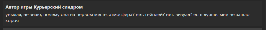 Что что? Дать комментарии остальным играм, чтобы стало понятно почему за одни мы голосуем, а за другие нет. Да нет, бред какой-то. Мы же тут не выбираем лучшие игры, а бустим себя любимых чтобы оказаться в топе, после того как слили голоса. Вот так и вырываются победы на твг никчемными людишками.