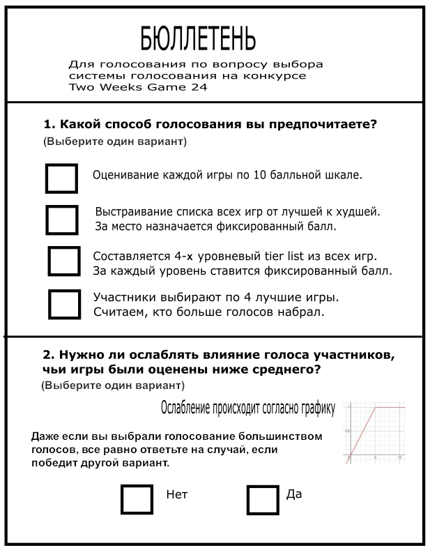 >>967046 Я хоть и ожидаемо на дне но сделал так же, 1 голос за ту игру что мне понравилась больше других + 3 голоса середнякам чтобы сделать им приятно.