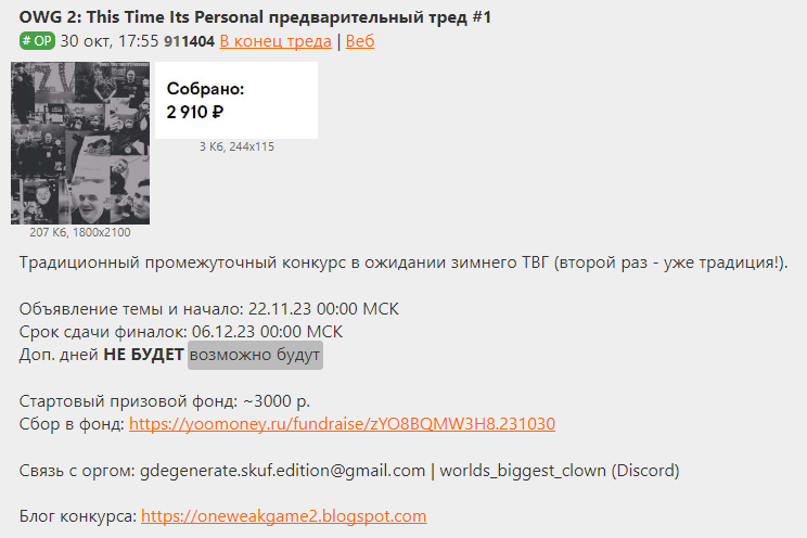>>968076 Вот тут согласен. Каждый сам виноват, что стал делать игру на его конкурсе и потратил свое время. Ублюдок на орге очень ловко манипулировал анонами, подсунув вместо ТВГ 26 подделку в виде ТВГЧ 26. Это как заменить колбасу на колбпсу, или молоко на молако. Заменитель продукта идентичный натуральному. Кто-то сразу прочитав название и "состав" распознал подделку, а кто-то понял свою ошибку только в конце, расплатившись здоровьем. В итоге нульчеблядь оказался типичным современным кабанчиком, подсовывающим хуйню вместо натуралки, да еще и с шринкфляцией в виде фонда в 0,5 от настоящего. >>968081 Ложь от и до. Нет подтверждений в блоге, нет подтверждений от дружков орга. Чистый фейк по отмыву репутации.