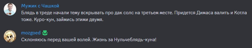 >На Кирю не гони, он сразу попросил Нульча разделить призовые с остальными двумя Да, думали легко получится вас объебать, а Нульчановский анон нахуевертил такого, что пришлось срочно спасать репутацию. Полгода заготовку пилила, весь труд на смарку.