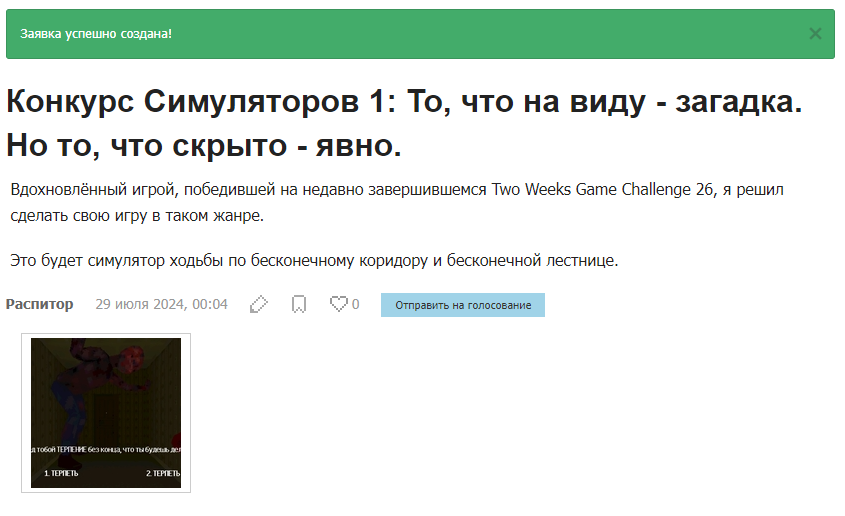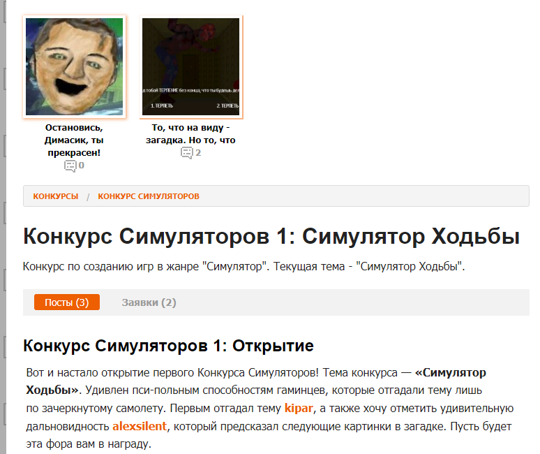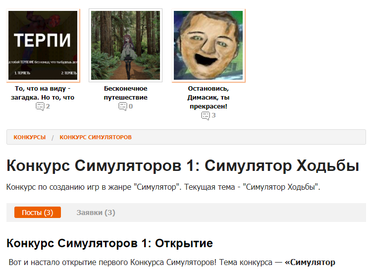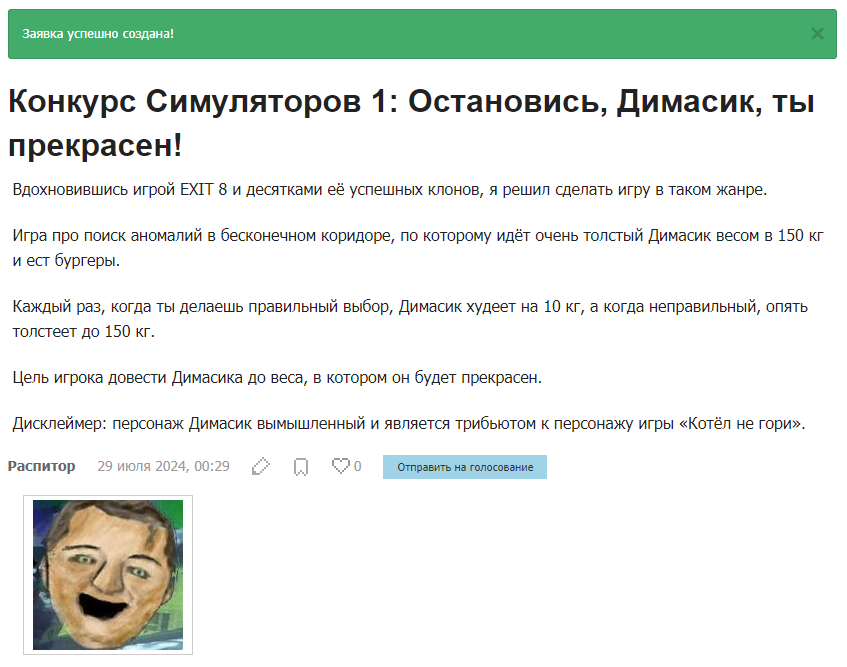 Короче, аноны, есть все шансы вкатиться и разъебать нормисов. Вкатывайтесьhttps://gamin.me/compos/konkurs-simulyatorov/1 Покажите силу ТВГ. ну то есть давайте как обычно по полной обосрёмся.