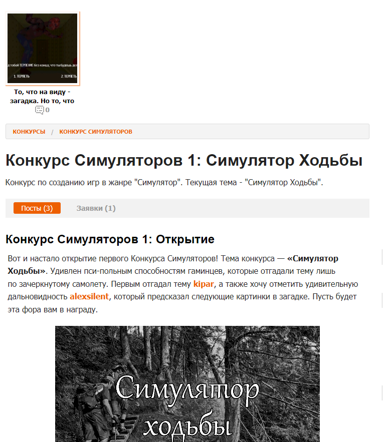 >>967980 Посмотрел ещё конкурсы у них. До этого побеждал какой-то Этекал, пародия на Абисс А ещё на один конкурс назад победила вообще поделка на РПГ мейкер с полностью пизженным артом из Фир энд Хангер. И это в основных конкурсах, которые Гаминатор. А ещё есть какие-то не сановные, типа КОД и вот теперь это этот нынешний про симуляторы. В КОДе уровень вообще дно дна, так что тут может будет не выше.