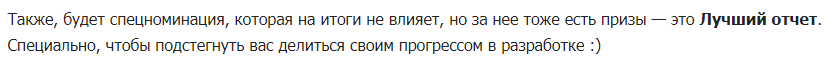 Каждые полгода в /gd проводится традиционный конкурс "Two Weeks Game Challenge", в ходе которого участники в течении двух недель должны создать игру на одну из заданных тем.