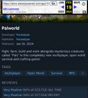 лично я думал лучше будет. что игра окажется в мировых трендингах, 1.5к+ отзывов за неделю, кокс, шлюхи, прощайте неудачники. но получилось как у зуковски - сферическая в вакууме хорошо продавшаяся игра на 300+ отзывов. я пробежал на релизе на легком, у меня клешни, когда оценка была 100% положительных на 20 отзывов, игра в целом пушечная, но коротка, о чем вскоре начали жаловаться в отзывах. что, кстати, повлияло на максимальный онлайн. и возможно на алогоритмы трендингов