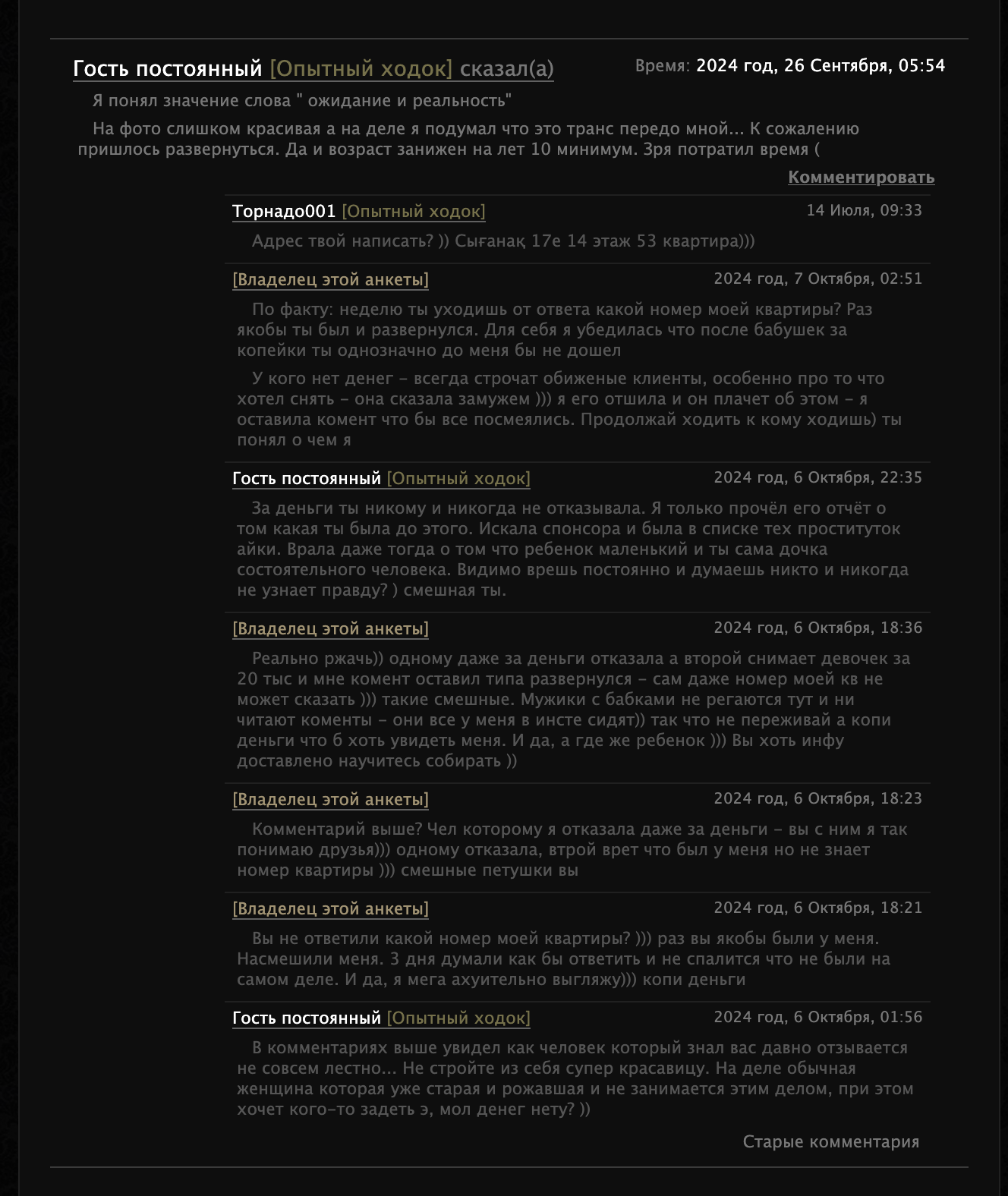 Итог: Внешность 4/5, минет 5/5, секс 4/5, общение и отношение к клиенту 3/5. 3 балла за отношение поставил за то что не дала насладится своей шикарной попой, если бы не этот момент, я бы несомненно посетил ее еще. Но все-таки за такой прайс хотелось бы получить чуточку большего!