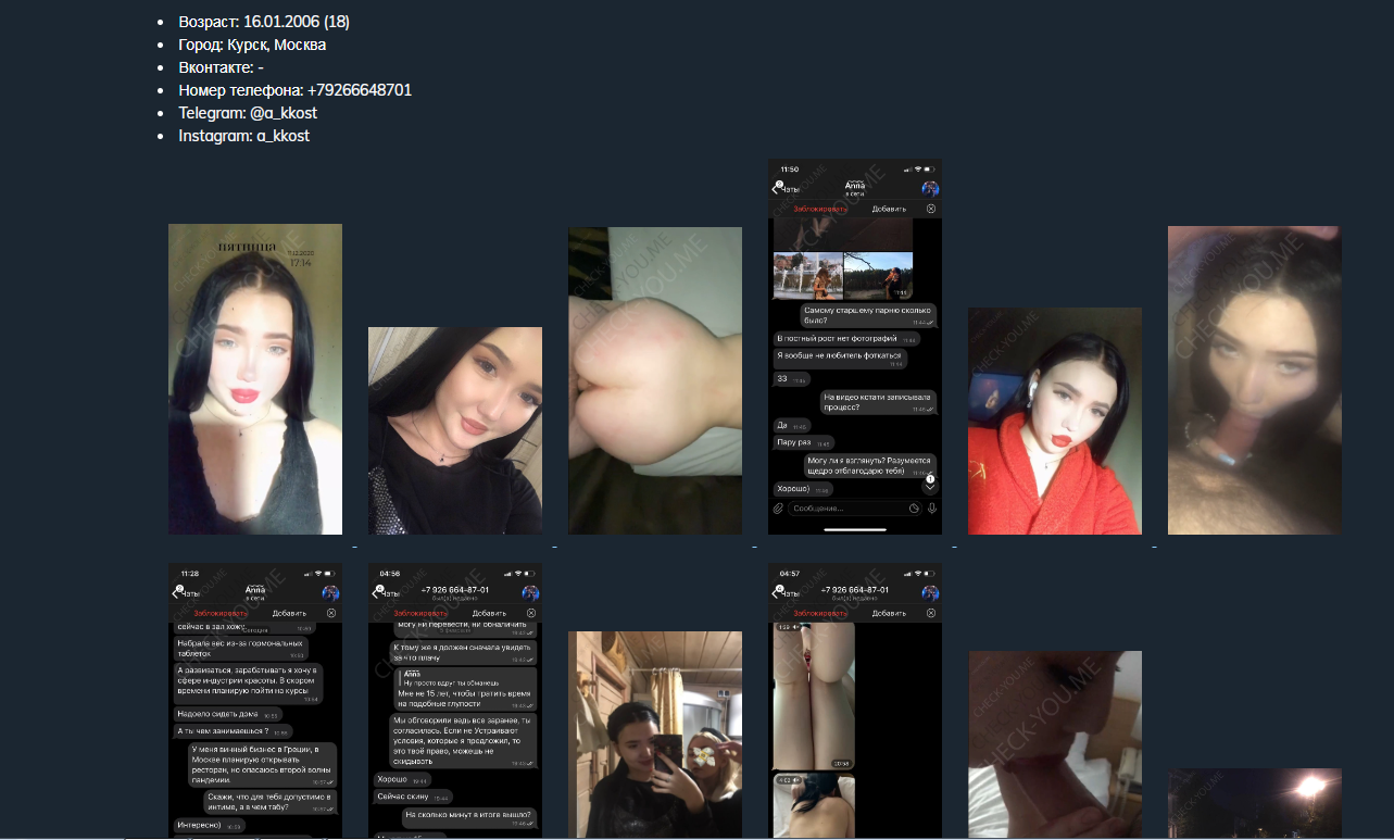Далее по списку Крючкова Карина из Москвы\Дубны. Слова излишни, в паке точно должен быть секс, у девчонки прекрасная попка, которой она мастерски владеет и очень сексуально прыгает на члене парня с татуировкой ДОЛБИ на лобке. Короче, потушите, прошу!) https://check-you.club/moskva/14842-kryuchkova_karina_pavlovna.html