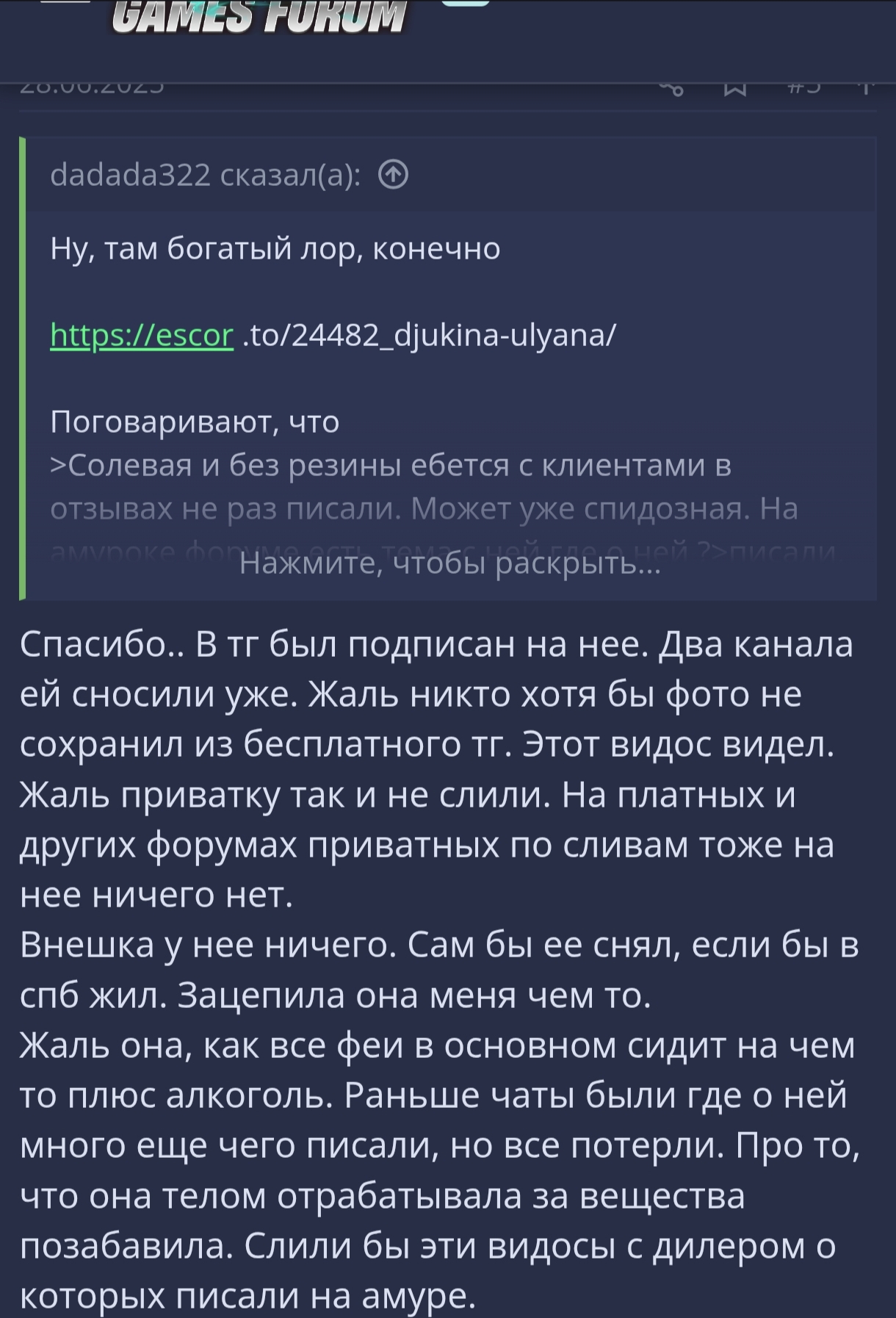 >>2065354 Есть тг ее новый, старый в бан улетел >>2065332 Baby Molly проститутка из спб. Ульяна из Новосиба. В приватке дохуя видосов.Интересная особа. Жаль ее так и не слили. Забавно конечно, что ее за дозу дилера и т.д. https://wlux.net/threads/34376/#post-580348