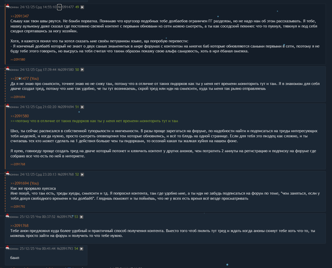 Хотя, я кажется понял что ты хотел сказать мне своём петушином языке, ща попробую перевести: - Я конченый долбаёб который не знает о двух самых знаменитых в мире форумах с контентом на многих баб которые обновляются самыми первыми в сети, поэтому я не буду тебе этого говорить, но высрусь на тебя считая что таким образом покажу свою альфа самцовость, хоть в ирл ёбаная омежка.