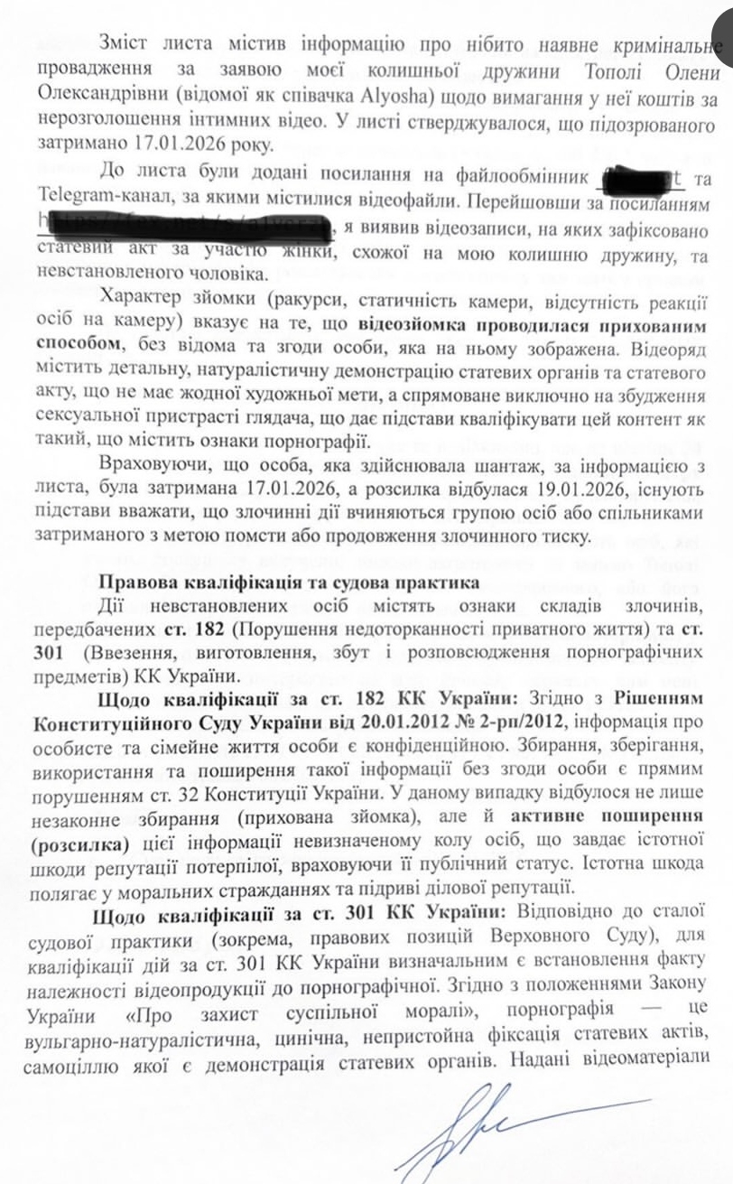 То-есть, Работали со знанием дела. 1. Если это он вымогал, то делал это не в первый раз и вся эта интрижка была именно для этого затеяна. Наименее вероятная версия 2. Вариант снял он, а вымогали другие - очень возможен. Но тогда что стало мотивом снять такое? Шантаж парня компроматом, очень вероятно. Есть ещё вариант за деньги, но тогда вопрос, кто он такой, чтобы исполнить заказ "закадрить известную милфу и снять видосы". 3. Скорее всего, интрижка была сама по себе. А отработали их уже в процессе оперативной отработки. Так как мужу Тарасу наставили рога и он об этом узнал, он попросил своих друзей из СБУ(вполне которые и слили инфу о измене), задачи которых по пропаганде украинской повестки он ранее исполнял(песня Фортеця Бахмут, концерт группы Антитела в Ялте в 2025, пропаганда со сцены), чтобы те засняли видосы. Прямо перед сливом, он аккуратно разошелся с ней. А когда согласовали с гебней слив, даже написал заяву в полицию, которую публично опубликовал, что кто-то ему прислал ссылку на файлы. 4 Есть ещё вариант, что Тарас отказался исполнять задачи по пропаганде и его таким способом наши чекисты решили наказать.