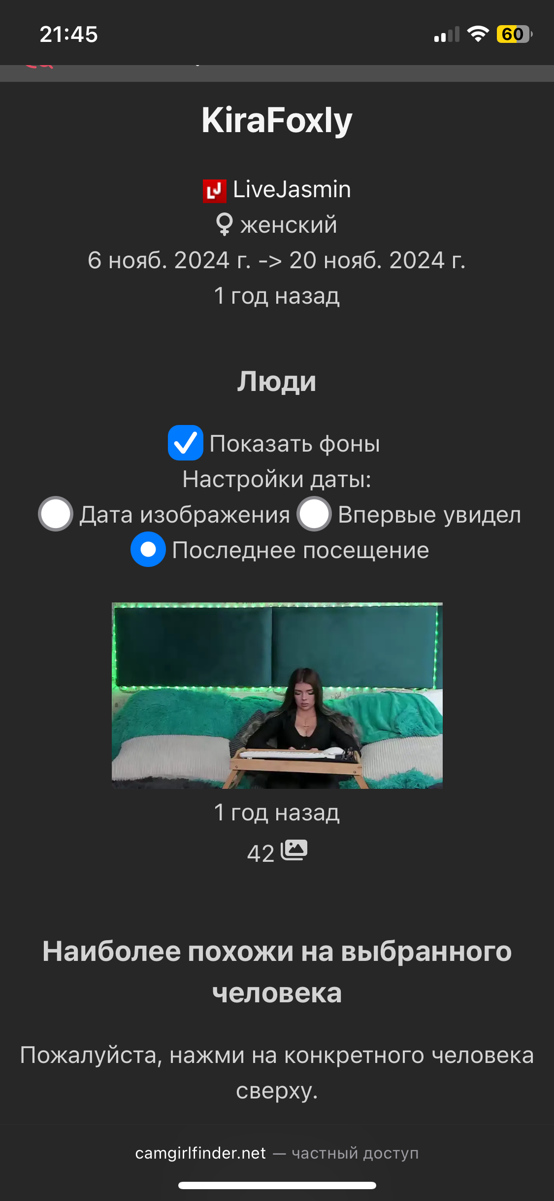 4. Сайты вроде https://cloud9cams.com/ и помеченные в изначальном списке как скриншоты трансляций хранят до 20 скриншотов трансляций, иногда там можно найти моделей, которые стримили 4 года назад и даже ранее (тех, что стримили 2-3 года назад точно можно найти).