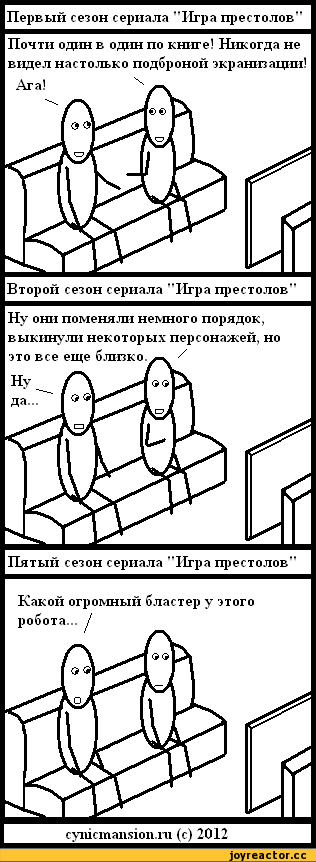 >>158942 Есть мнение, что к середине цикла жироус сам не в курсе, чем все должно было кончится. Потом жирухи разгадали все/большинство его многоходовочек, и он стал включать дурачка, мол все не так просто (хотя понял, что обосрался). Сериал же будет все подгонять под бюджет/желание ЦА, а книги в итоге будут примерно подгоняться под сериал, только вот дописывать их будут рандомные негры - инфа 75%, можете скринить.