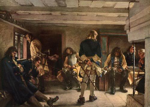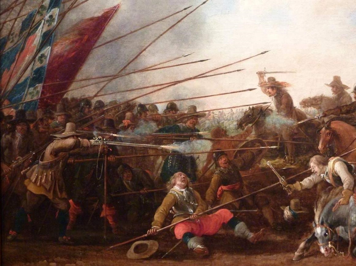 Воспоминания гонца из Ирландии в битве при Марстон Муре. >>В огне, дыму и смятении этого дня я, богом клянусь, не знал, куда податься. Бегущих с поля солдат обеих сторон было так много, они были такими задыхающимися, такими онемевшими, такими испуганными, что я не мог принять их за людей, кроме как по движению их ног, которые всё ещё служили им; ...обе армии были перемешаны, и кавалерия, и пехота, ни один отряд не оставался на своём месте в общем строю. В этом ужасном беспорядке я пересекал поле; я встретил толпу шотландцев, кричащих "Горе нам, мы все разбиты!" и преисполненных жалобами и скорбью, как будто настал их судный день, от которого они не знали как спастись; а дальше встретил я истрёпанный отряд, уменьшенный до четырёх солдат с корнетом; там и сям натыкался я на пехотного офицера без шляпы, опознавательной повязки, шпаги и всего остального кроме ног, он только и мог, что спрашивать, где дорога к ближайшим гарнизонам, которые ... были переполнены бежавшими солдатами с обеих сторон за несколько часов, хотя находились в 20 или 30 милях от места битвы
