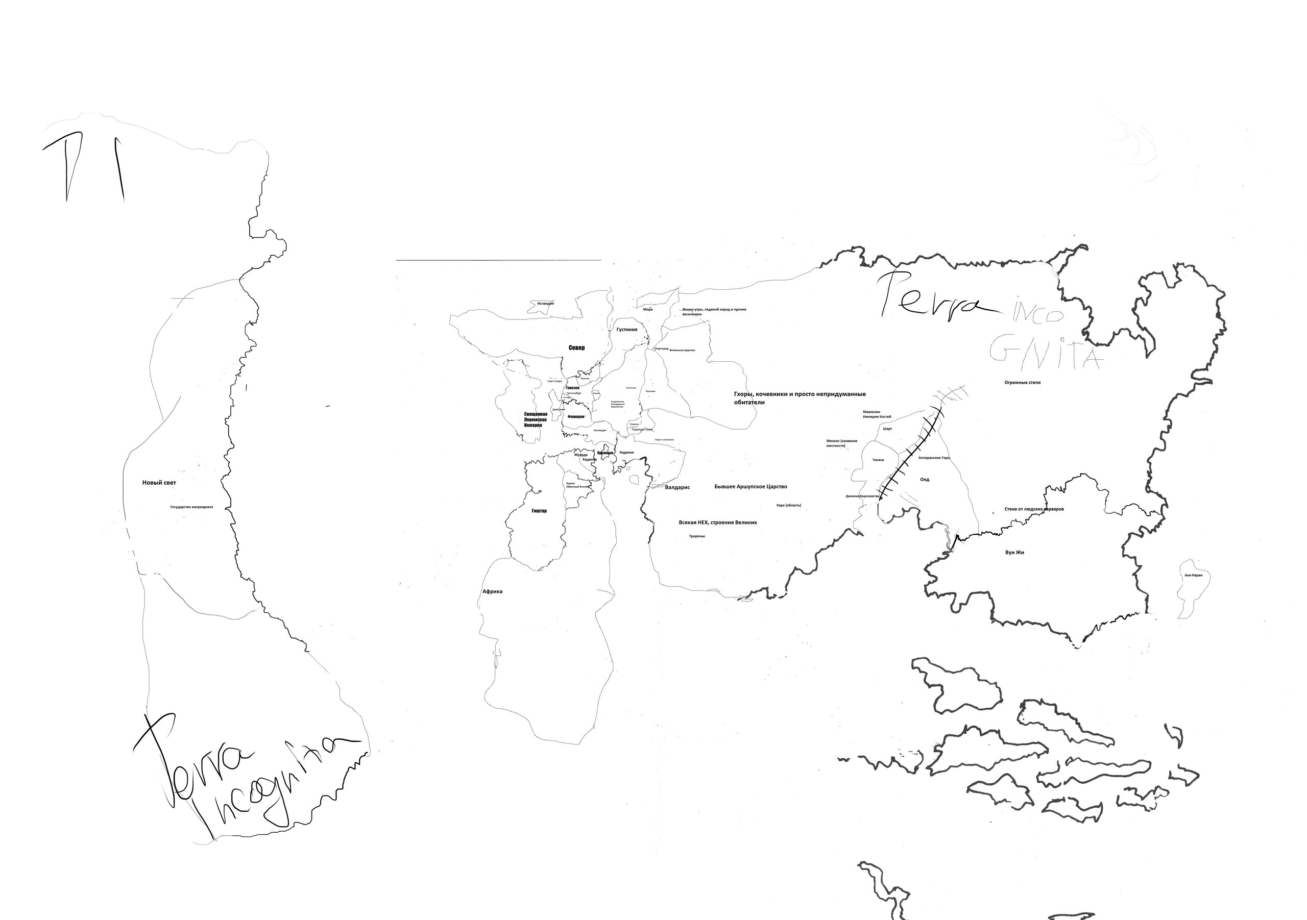 Впрочем, второе, возможно, не обязательно, так как сам я не только продумываю сам мир и его особенности уже на ходу, но и придерживаюсь мнения, что читатель должен воспринимать мир естественно, без необходимости штудировать многостраничные мануалы до знакомства с сами художественным произведением и потому стараюсь с ходу не нагружать текст лишними терминами и многочисленными особенностями, которые может быт сложно запомнить и стараюсь подавать информацию предельно естественно. Так же в сопроводительных материалах есть недоделанная карта, где можно полюбоваться моими охуительными художествами в Пейнте.