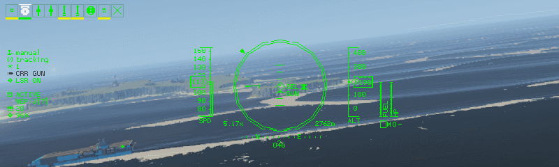When using the gimbal style cameras, you can track and laze targets on the ground. These are stabilized cameras with powerful optics, capable of up to 20x zoom. This style of camera is available on most vehicles, including aircraft, amphibious vehicles, and even the carrier.