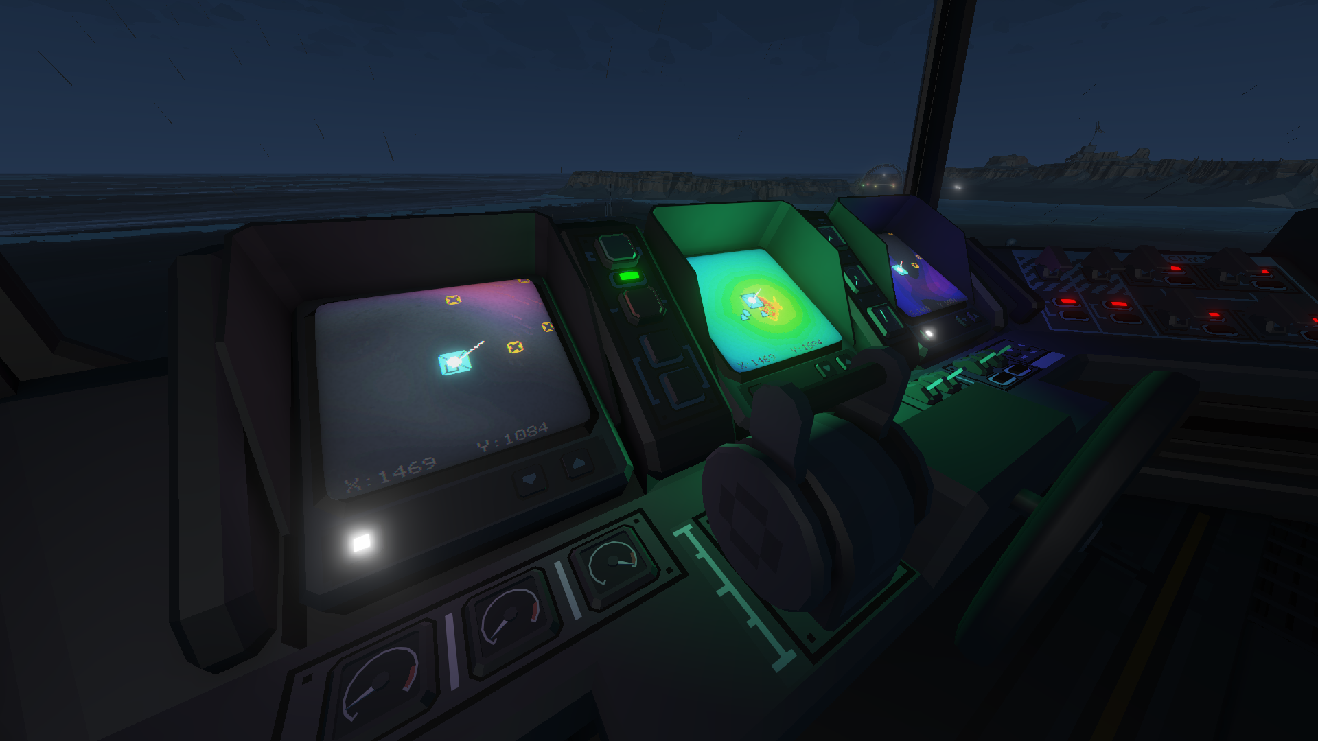 The lower console has 3 multifunction displays which can be set up to the players preference, engine controls and dials, fuel information, rudder, throttle, control mode and gear controls, signalling and illumination lights.