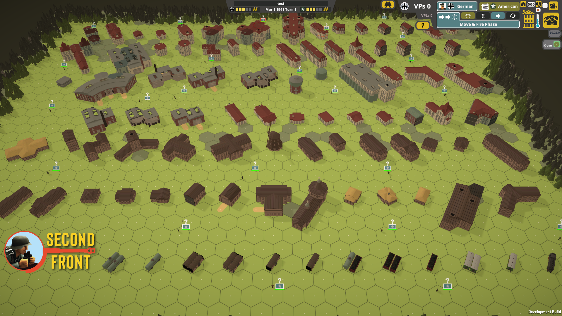 Хотя по последнему могут быть и исключения. К примеру, здесь лес и домики занимают весь гекс, и, соответственно, всем гексом ограничивают линию видимости — даже в настолках объекты могут быть меньше гекса. Тоже касается и передвижения в такой гекс: в SL можно войти в гекс и выбрать ландшафт, к примеру, в гексе со строением строение обойти, не входя в него.