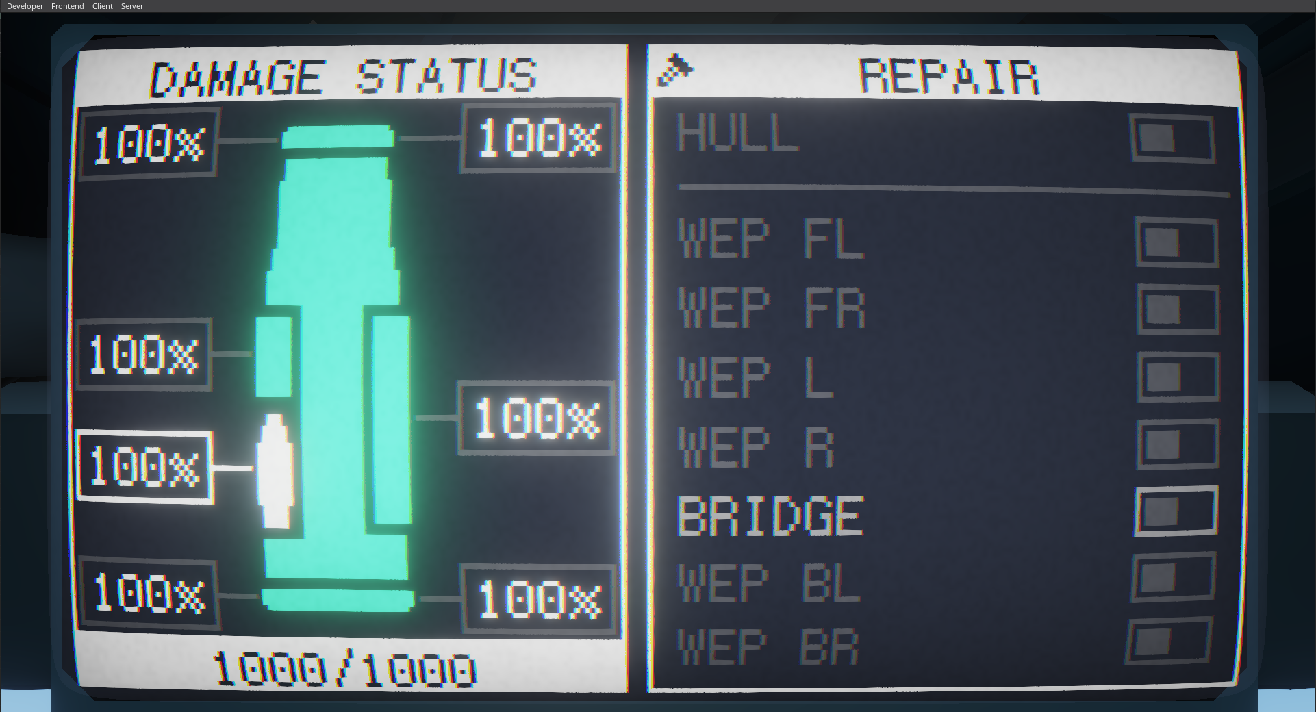 In the original game, vehicles could receive damage to a specific component of a vehicle that would effect the behaviour of that vehicle in a specific way. In the remake, we have designed main carrier damage in a similar way, so that the carrier takes damage (by weapons, collision, etc) at a specific location. For example, a hit to the tower could disable radar, while damage to a specific CIWS would disable that turret.