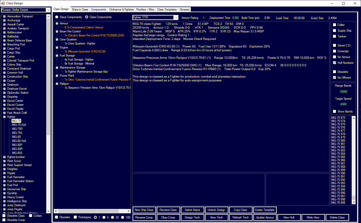 >>1294181 >И вообще микроменеджмент файтеров это еботня сильно на любителя микроконтроля Чего там менеджить-то? Раздуваешь верфь минимального размера (1000 тонн, если б только их уменьшать можно было) на 20-30 дорожек, каждые несколько недель заказываешь себе новую партию, периодически подвозишь на передовые базы и восстанавливаешь потери так же, как подвозил бы обычные ракеты. Единственная головная боль - это если файтеру прилетает по ебалу настолько, что вышибает движок, но он при этом выживает - таких приходится авианосцем вручную подбирать. Но они настолько бумажные, что это крайне редко происходит.