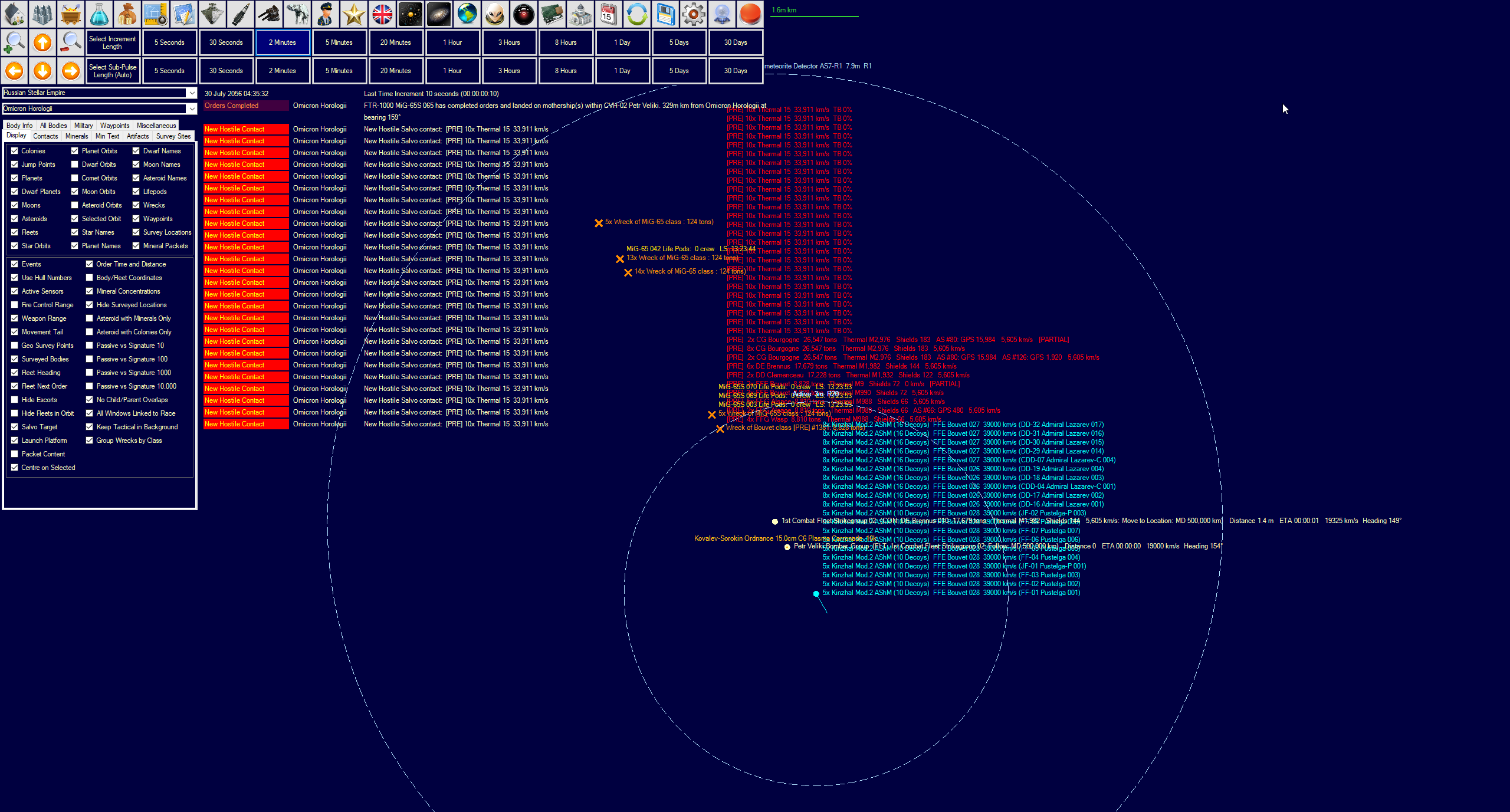 >>1253702 >Они разделяются на два независимых флота? Как это можно сделать? Ну вот новая система. Отделяю три гравиразведчика которые Time. Они становятся отдельным флотом. Выставляю этому флоту Standing Orders. Потом приказываю разделиться в ближайшей точке которую надо исследовать это SL11. Дальше они распадаются на три флота и у каждого сохраняюстя приказы на исследование. То же делаю с георазведчиками.