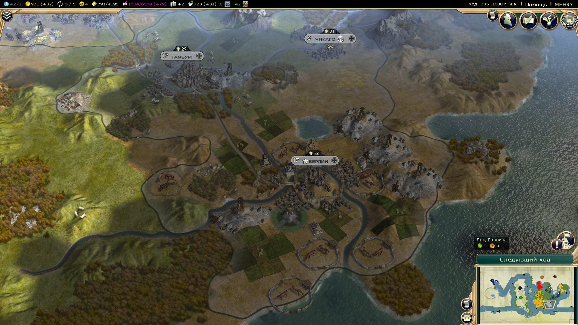 Наконец города разрастаются нормально, застройка выглядит бесшовно и красиво. По рекам можно плавать. Пока уже за это игра обходит шестерку. Только с лидерами какой-то кал намутили