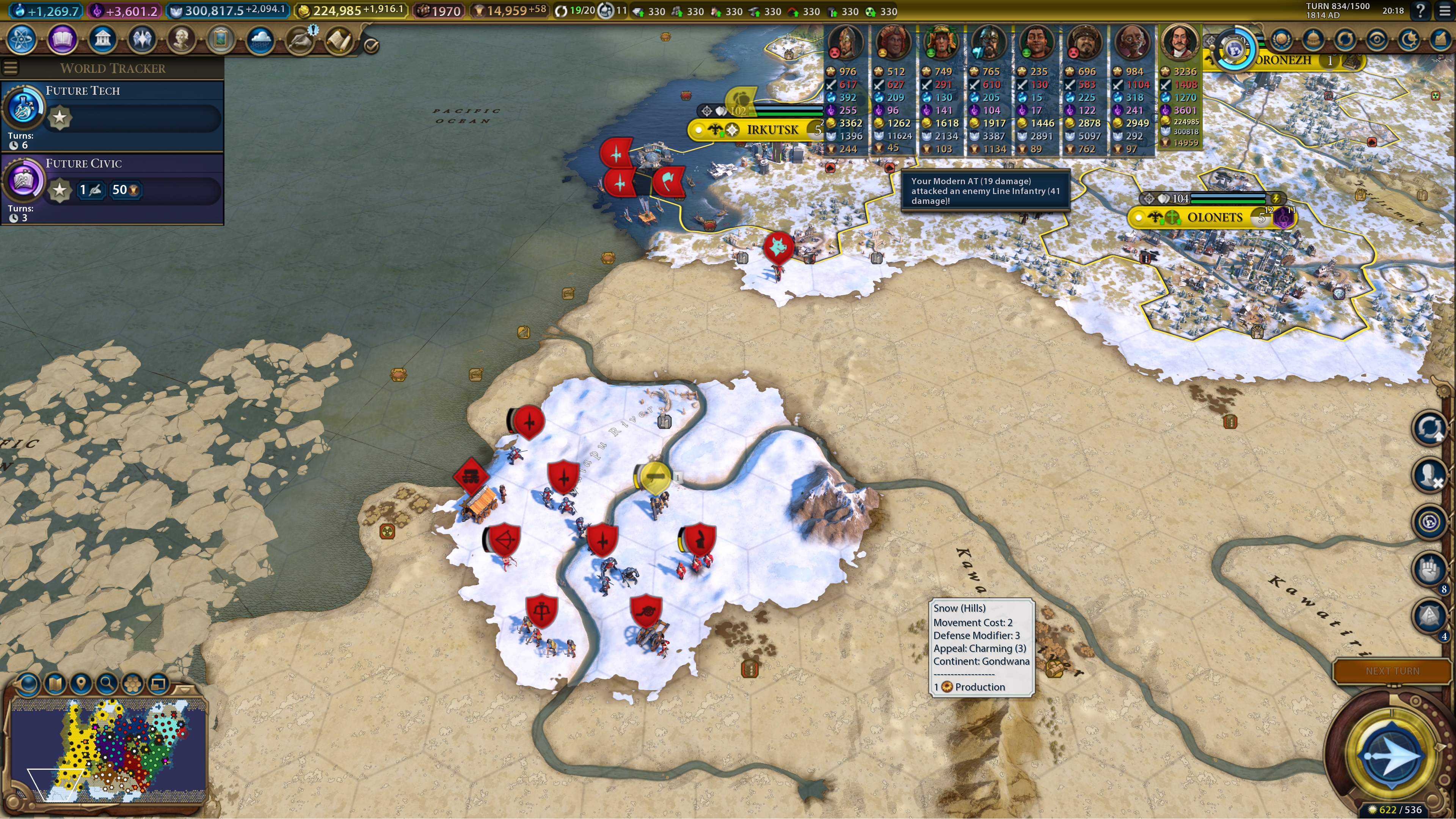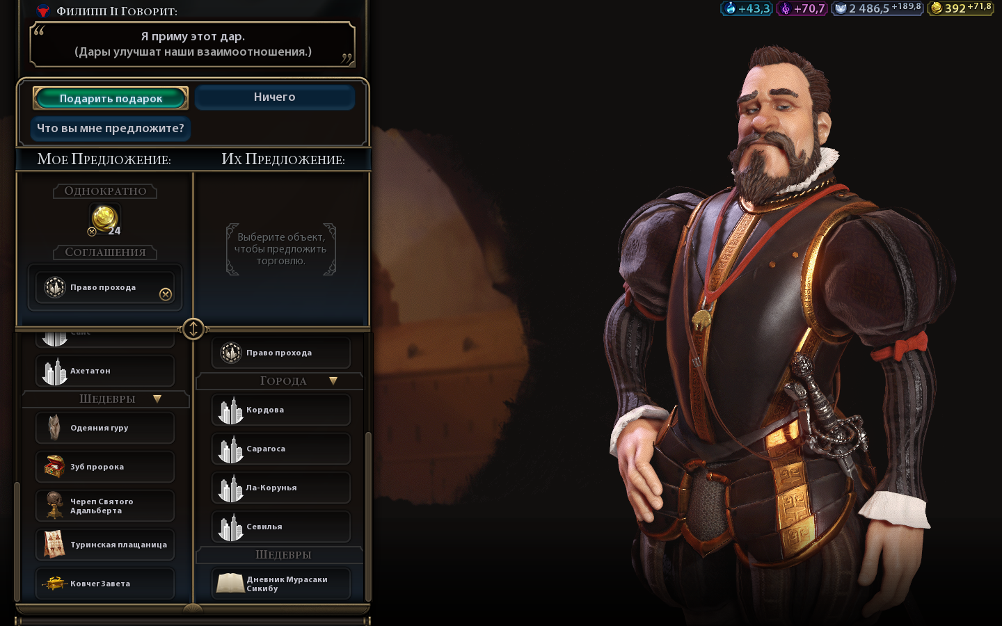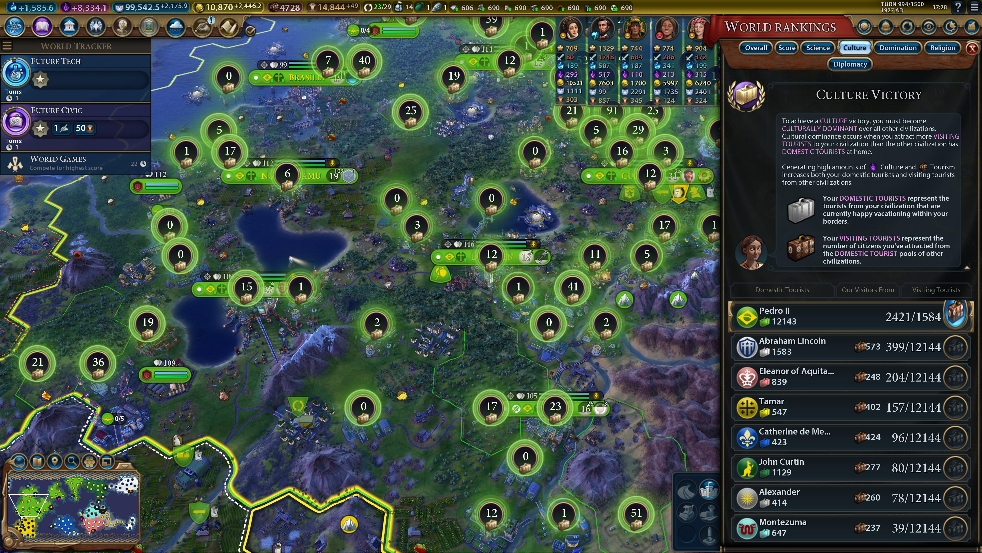 >>1279177 > Тут ещё нужно помнить что ты можешь давить культурой соседа настолько, что его города могут перейти к тебе через бунт. Не всегда это выгодно и приходится ограничивать культуру города, специально не строя культурные постройки. На пикриле лидер цивилизации в момент, когда к нему захотел примкнуть бесполезный город из-за преклонения перед его культурой.