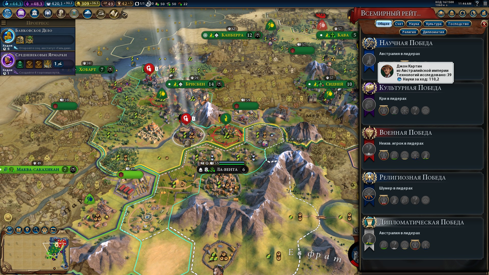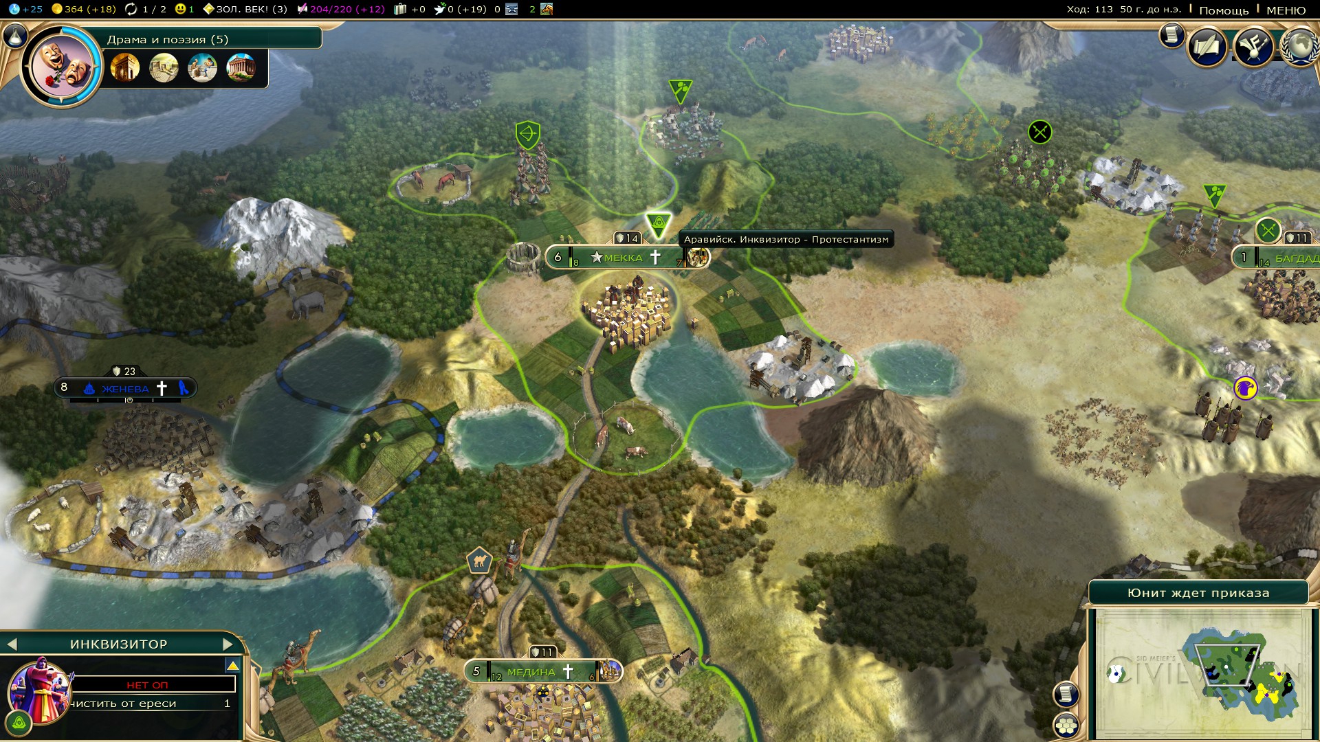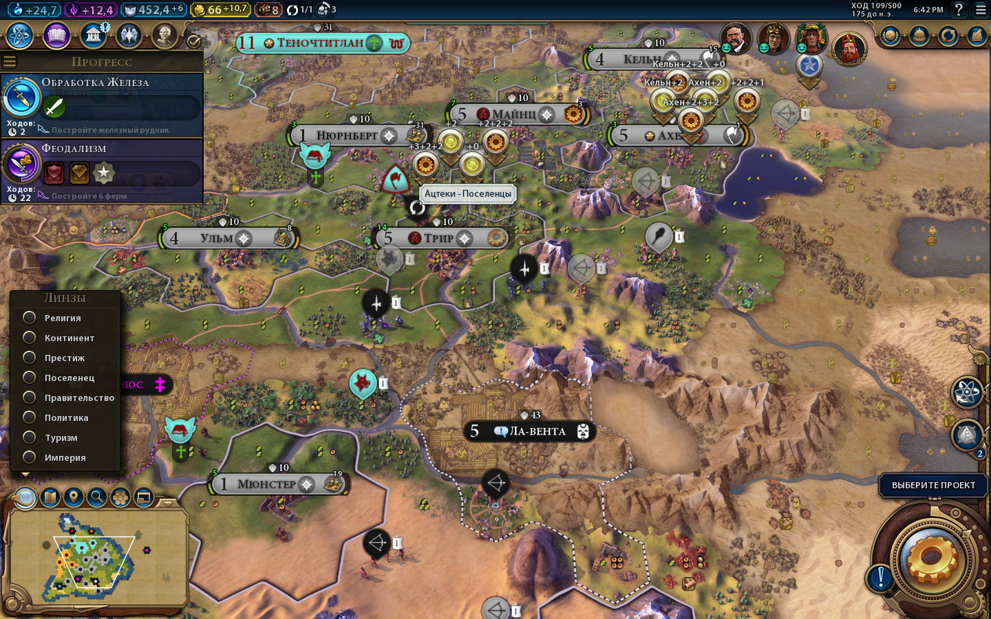 Слабые цивилизации типа Франции за Медичи на очень потных картах могут быть вынуждены отслеживать каждое колебание настроений соседа, менять правительство под совпадающее с ним, направлять ему караваны и задабривать его подарочками, лишь бы он не размазал превосходящей армией, сорвав намечающуюся культурную победу. Но если тебе не нравится Томирис как сосед на континенте и старт в пустынной местности без ничего, то ты всегда можешь сделать реролл.
