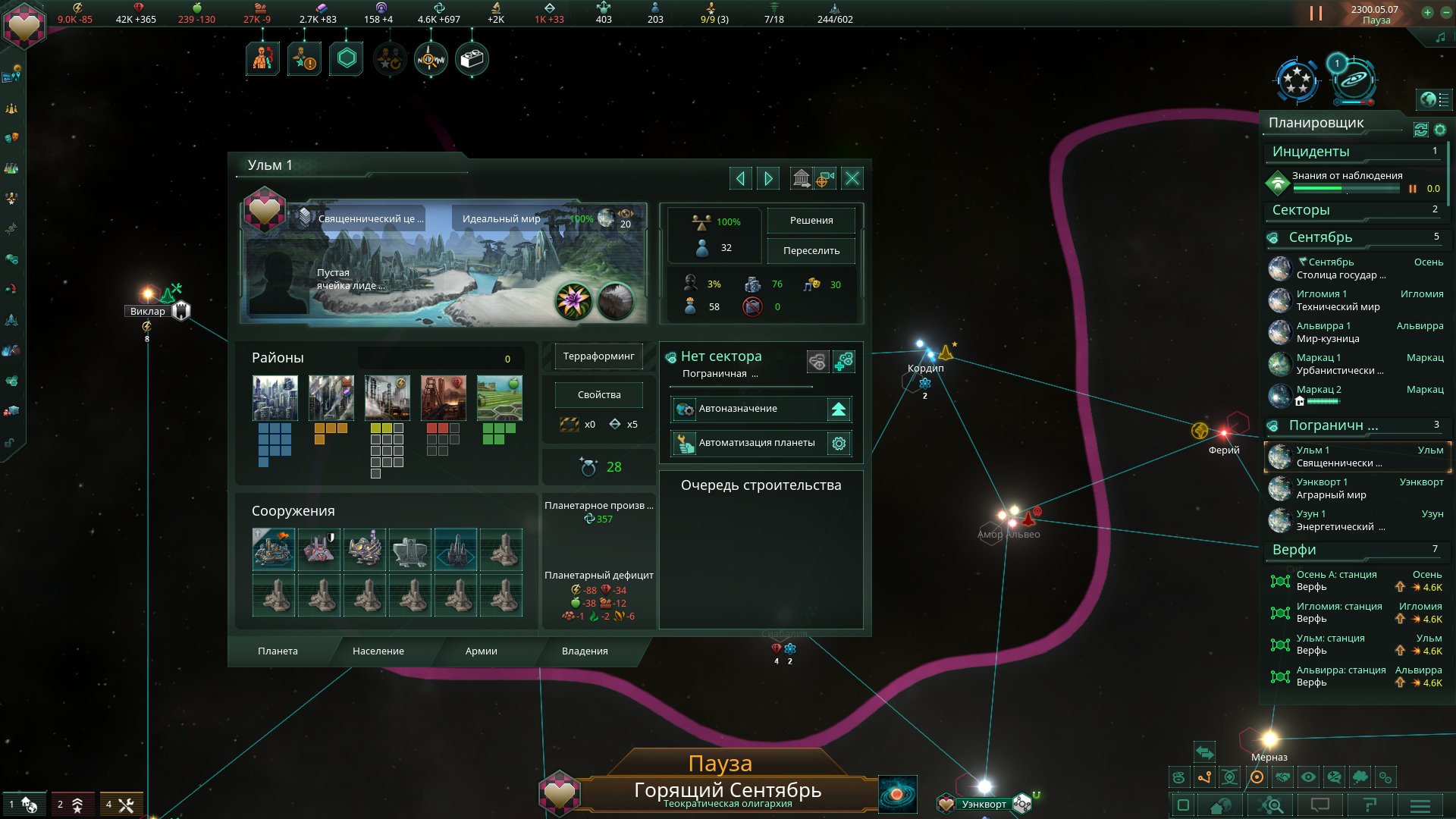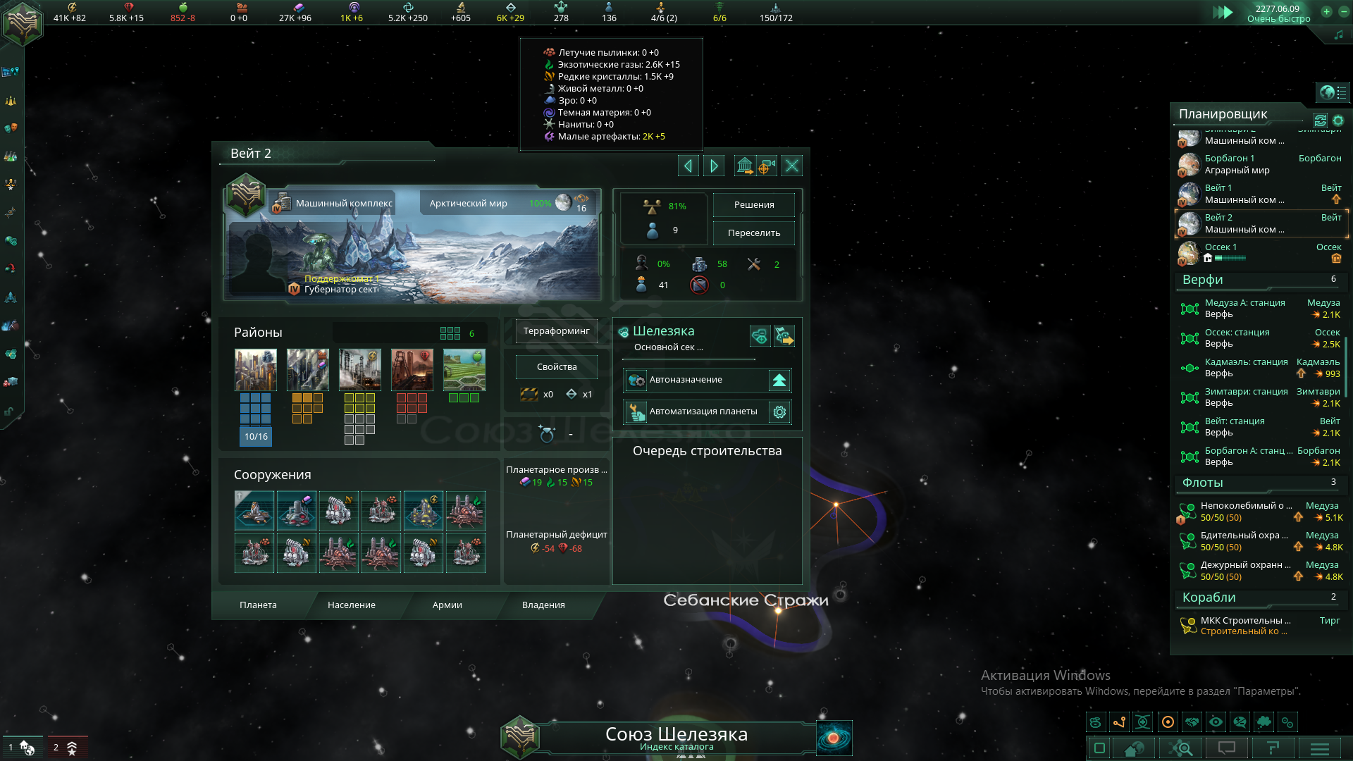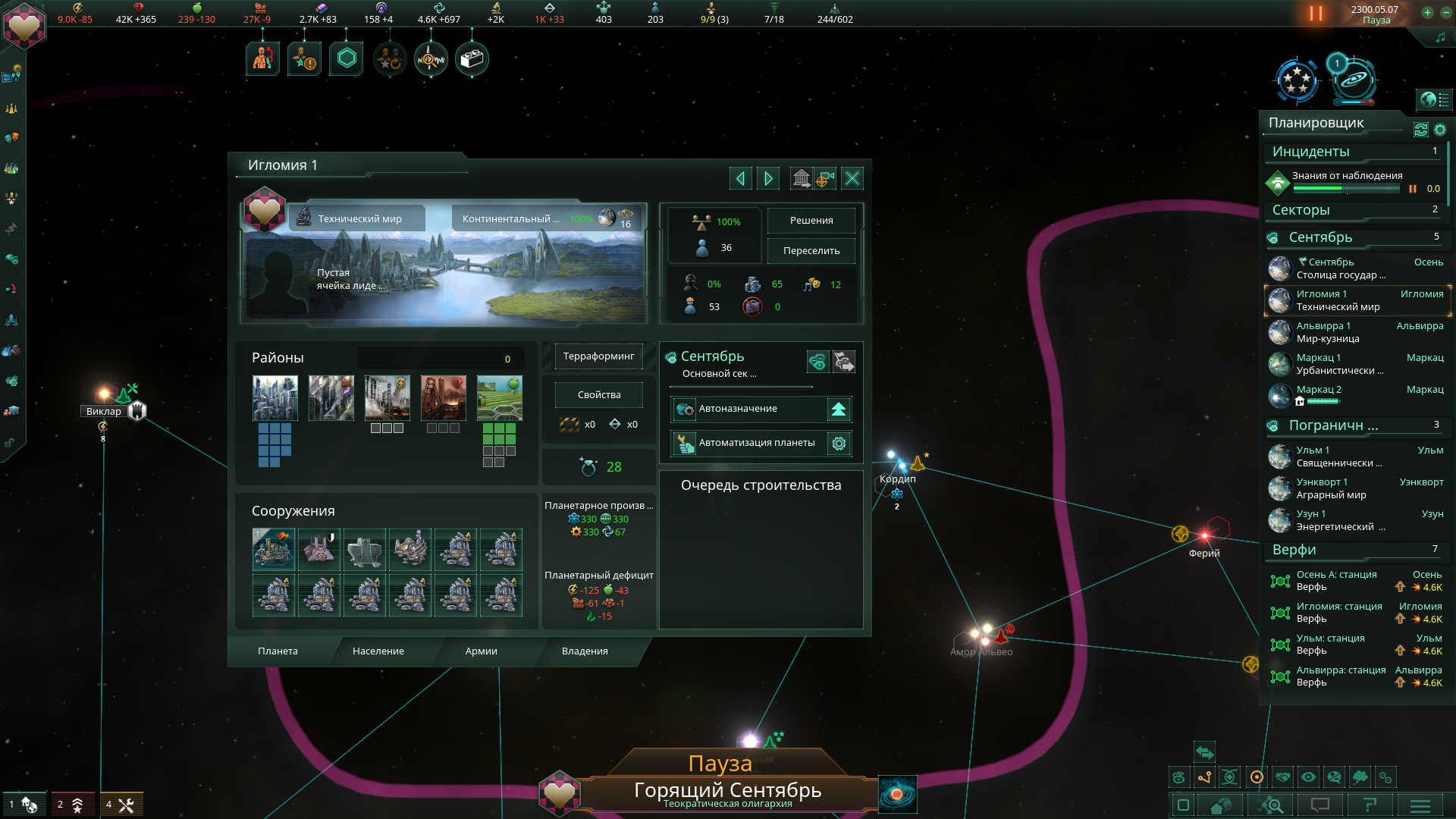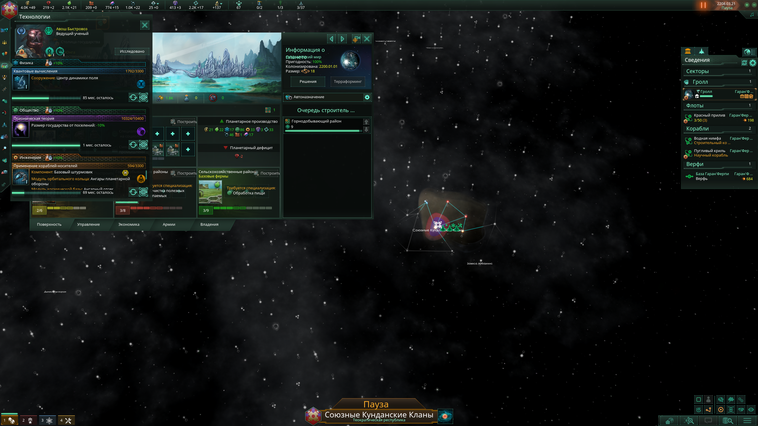 >я эту планету собираюсь оставлять Научным центром Там архивы и производство. Нормально никак не сделать если одна планета. Сам обычно вторую специализирую под сплавы и хозтовары, а третью под единство. Столица только под навуку.
