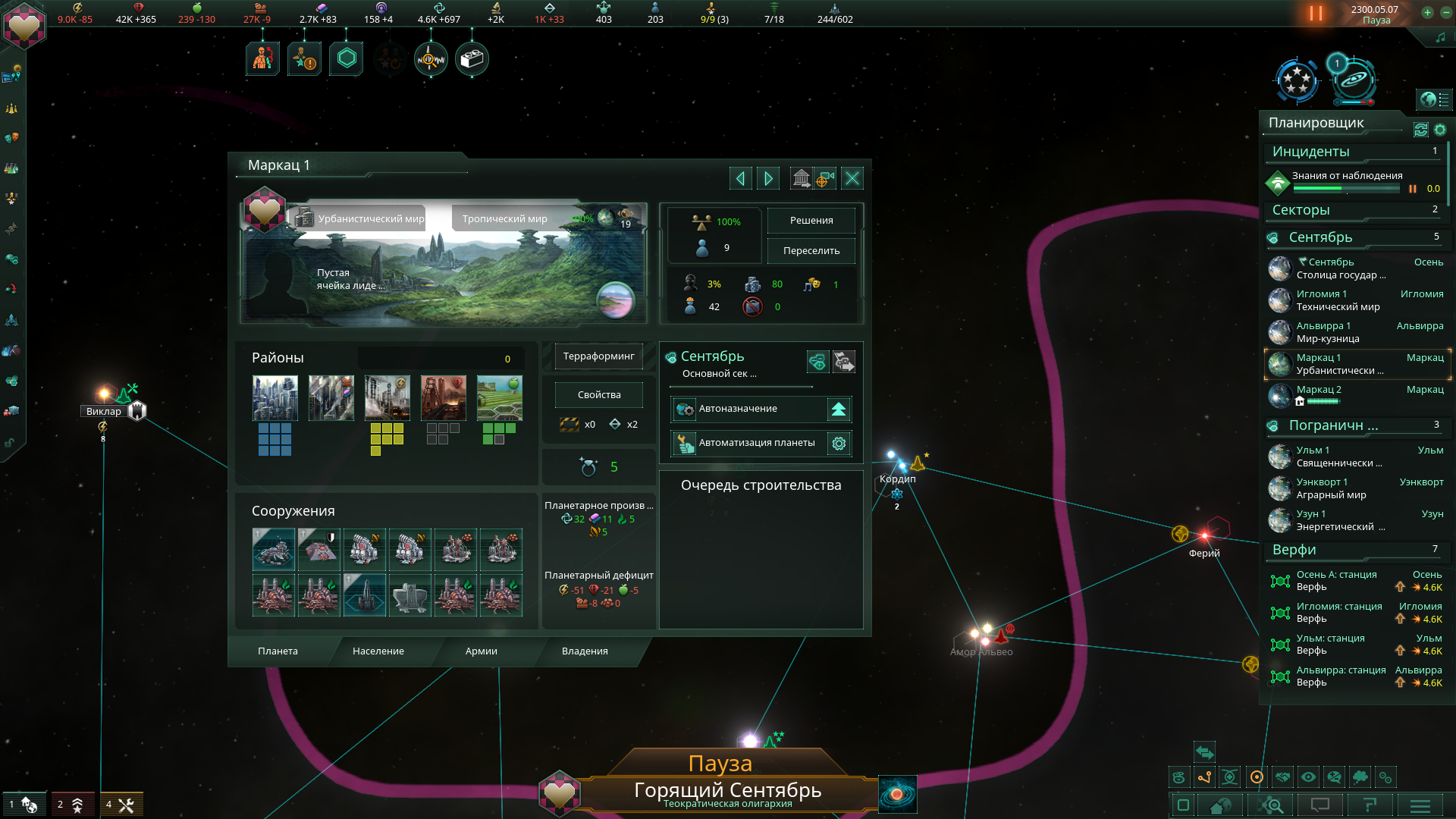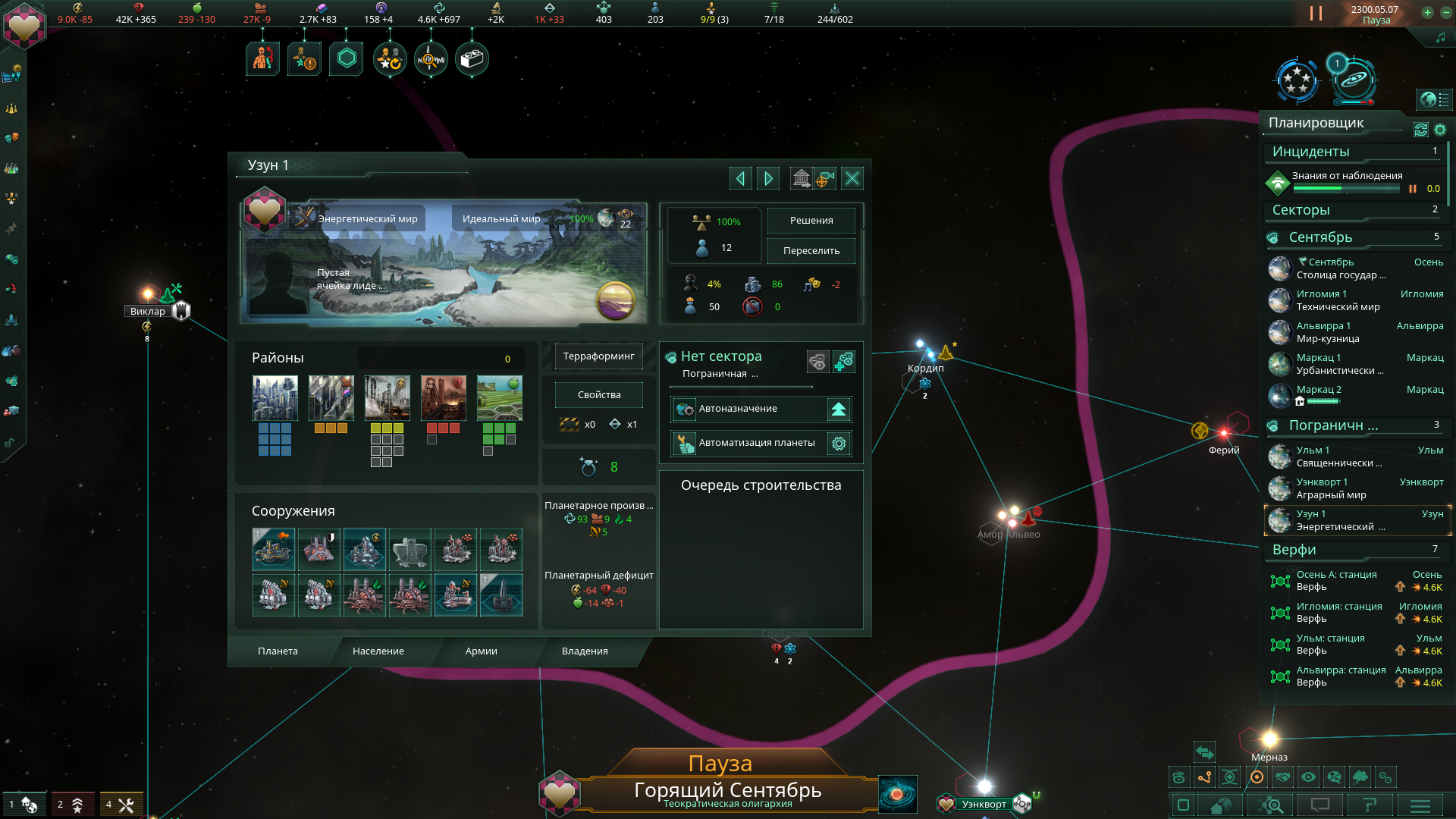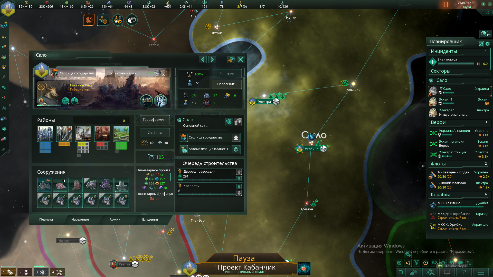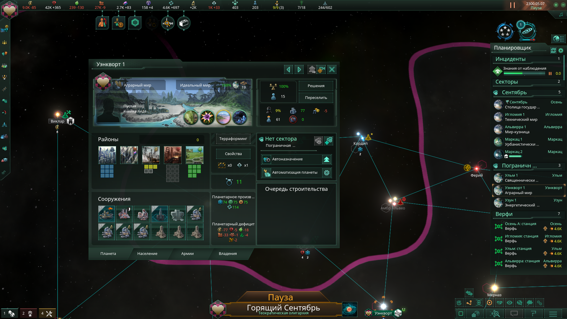 >я эту планету собираюсь оставлять Научным центром Там архивы и производство. Нормально никак не сделать если одна планета. Сам обычно вторую специализирую под сплавы и хозтовары, а третью под единство. Столица только под навуку.