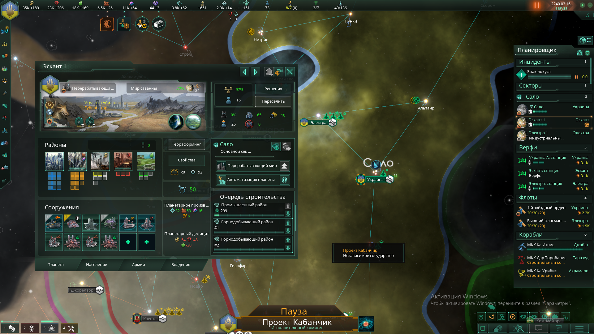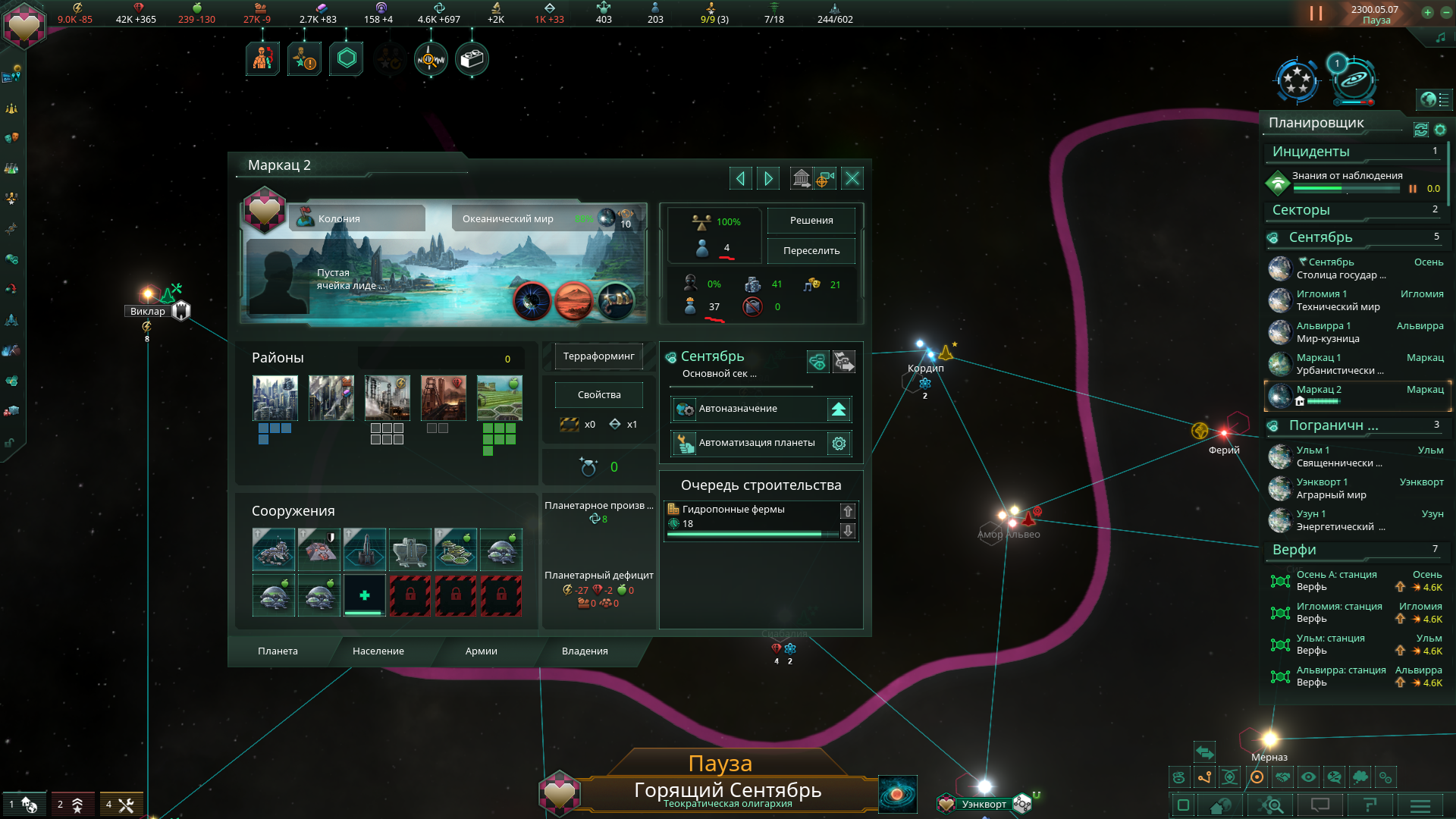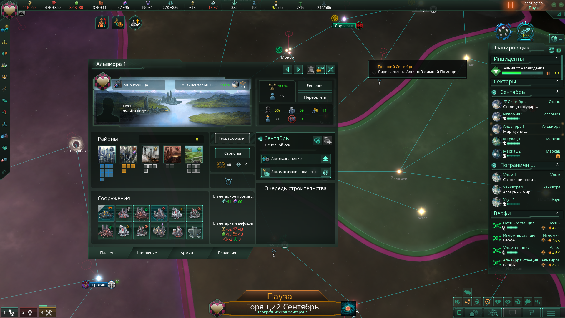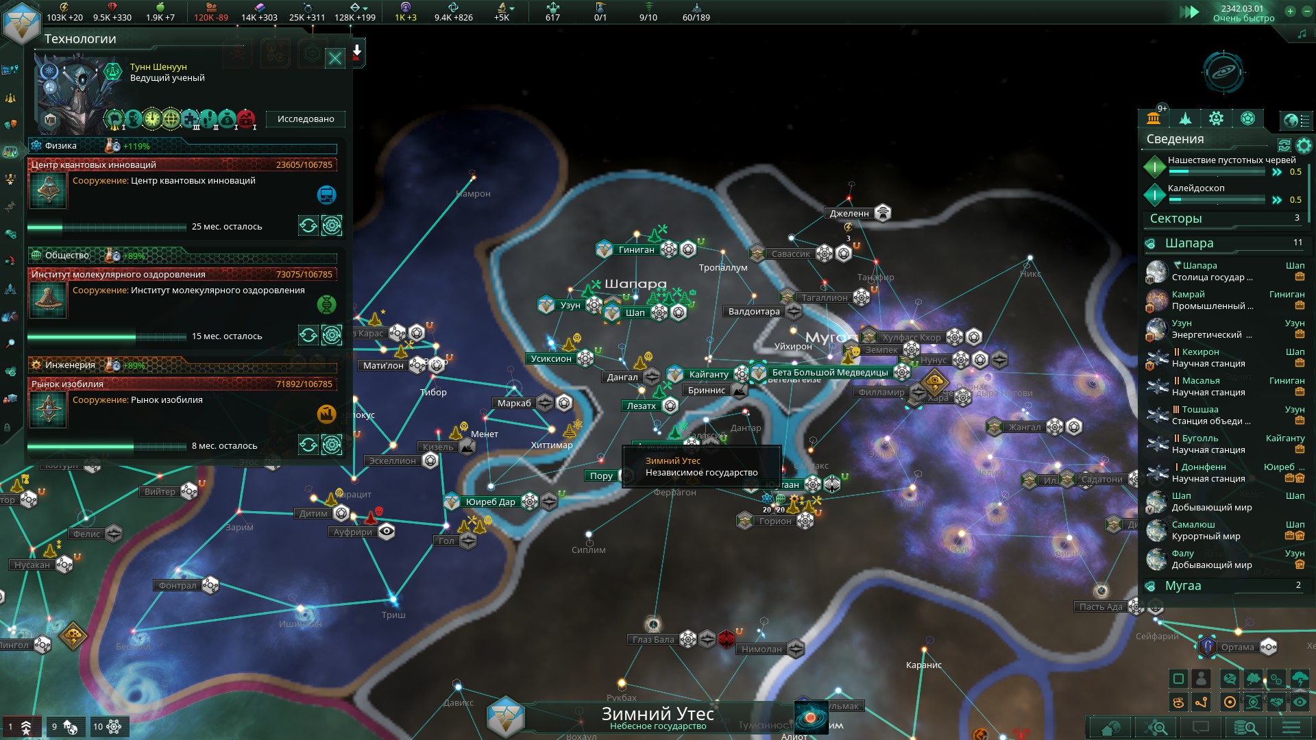 >я эту планету собираюсь оставлять Научным центром Там архивы и производство. Нормально никак не сделать если одна планета. Сам обычно вторую специализирую под сплавы и хозтовары, а третью под единство. Столица только под навуку.