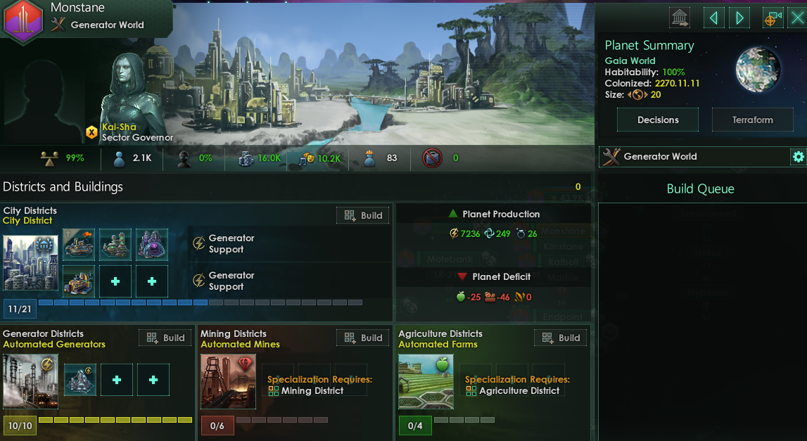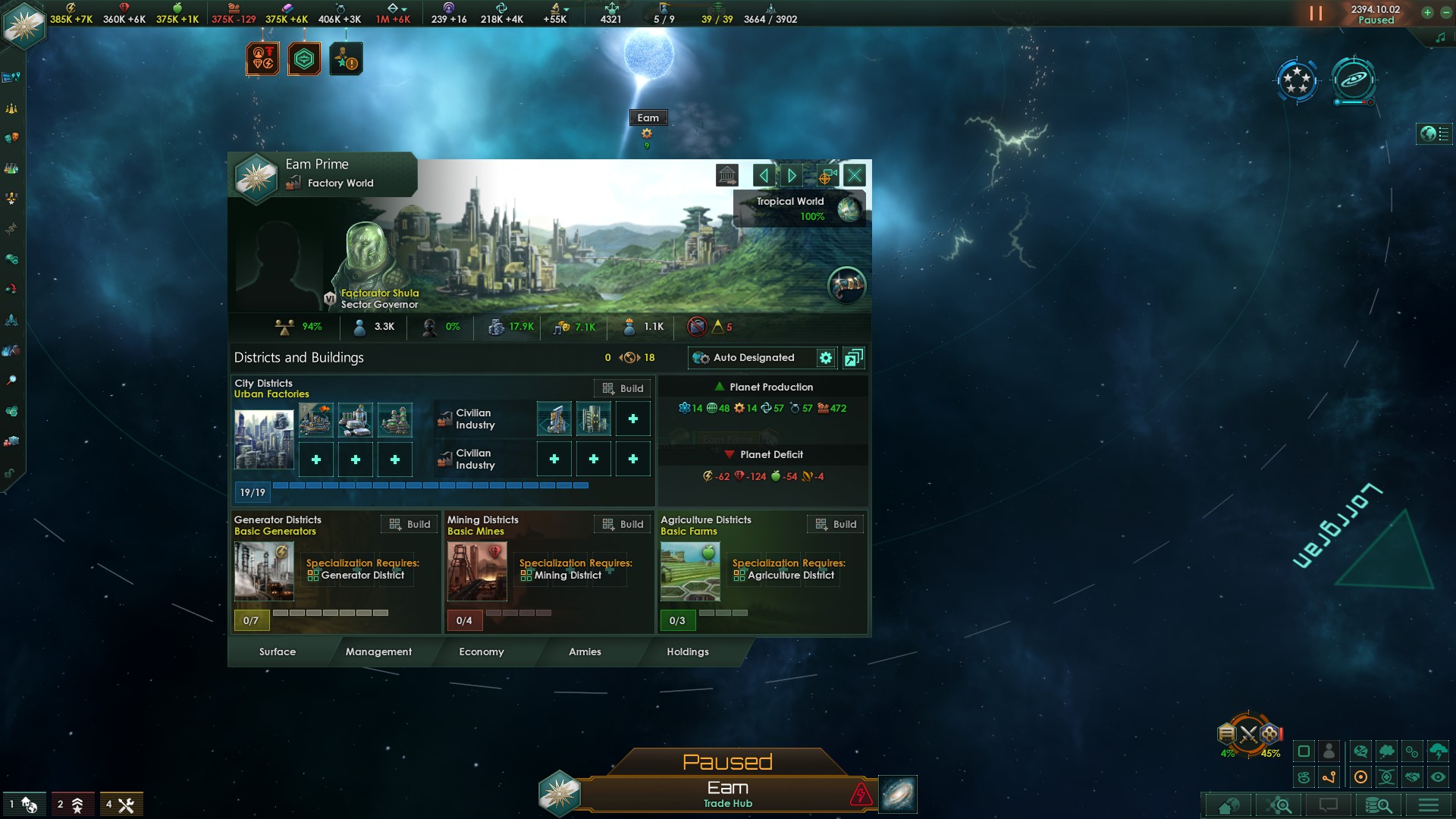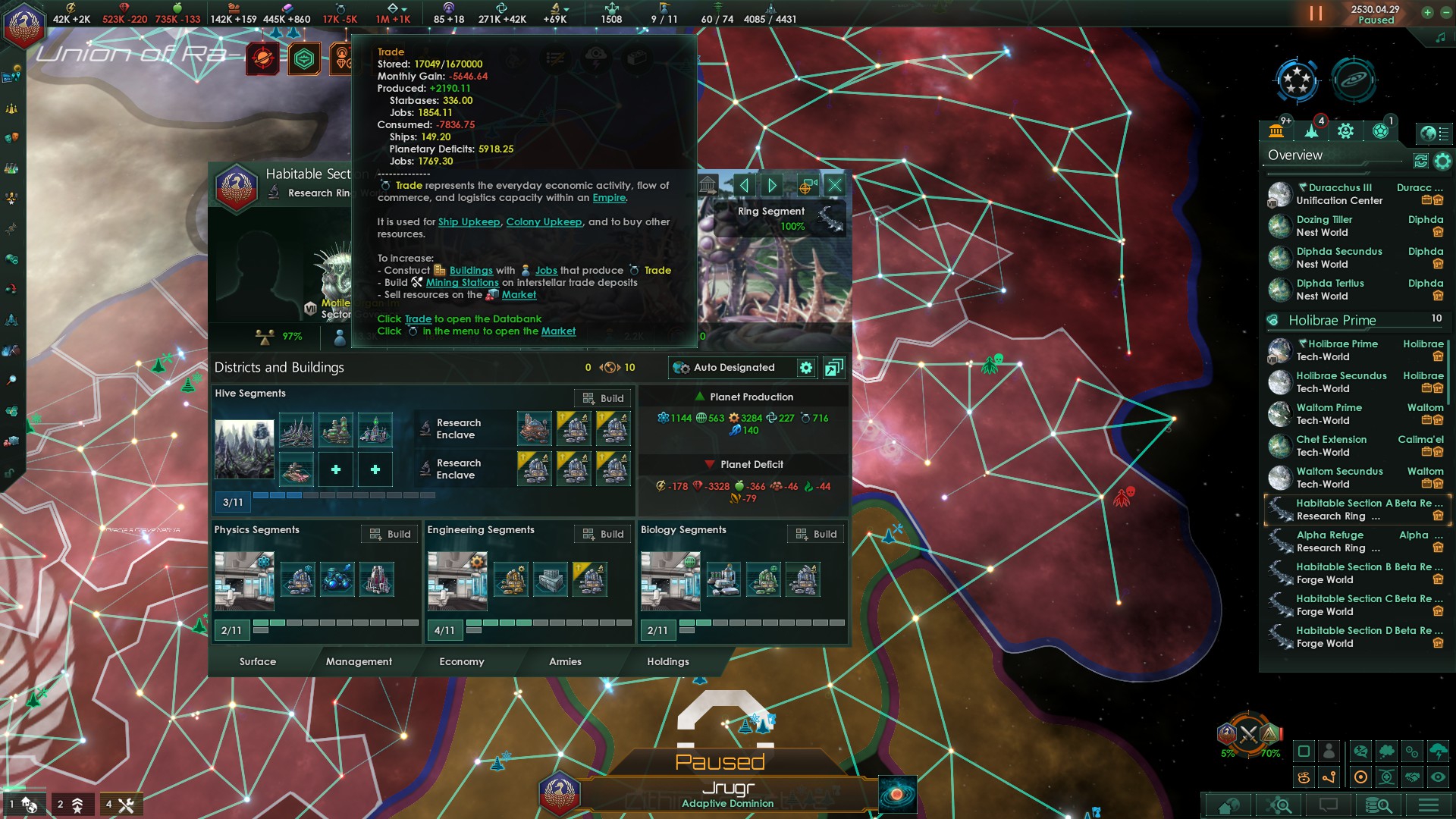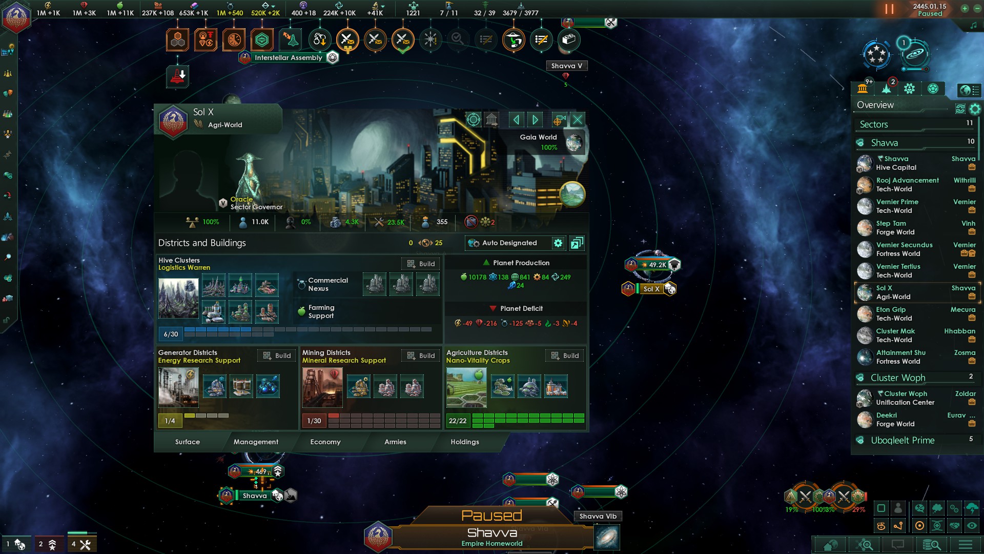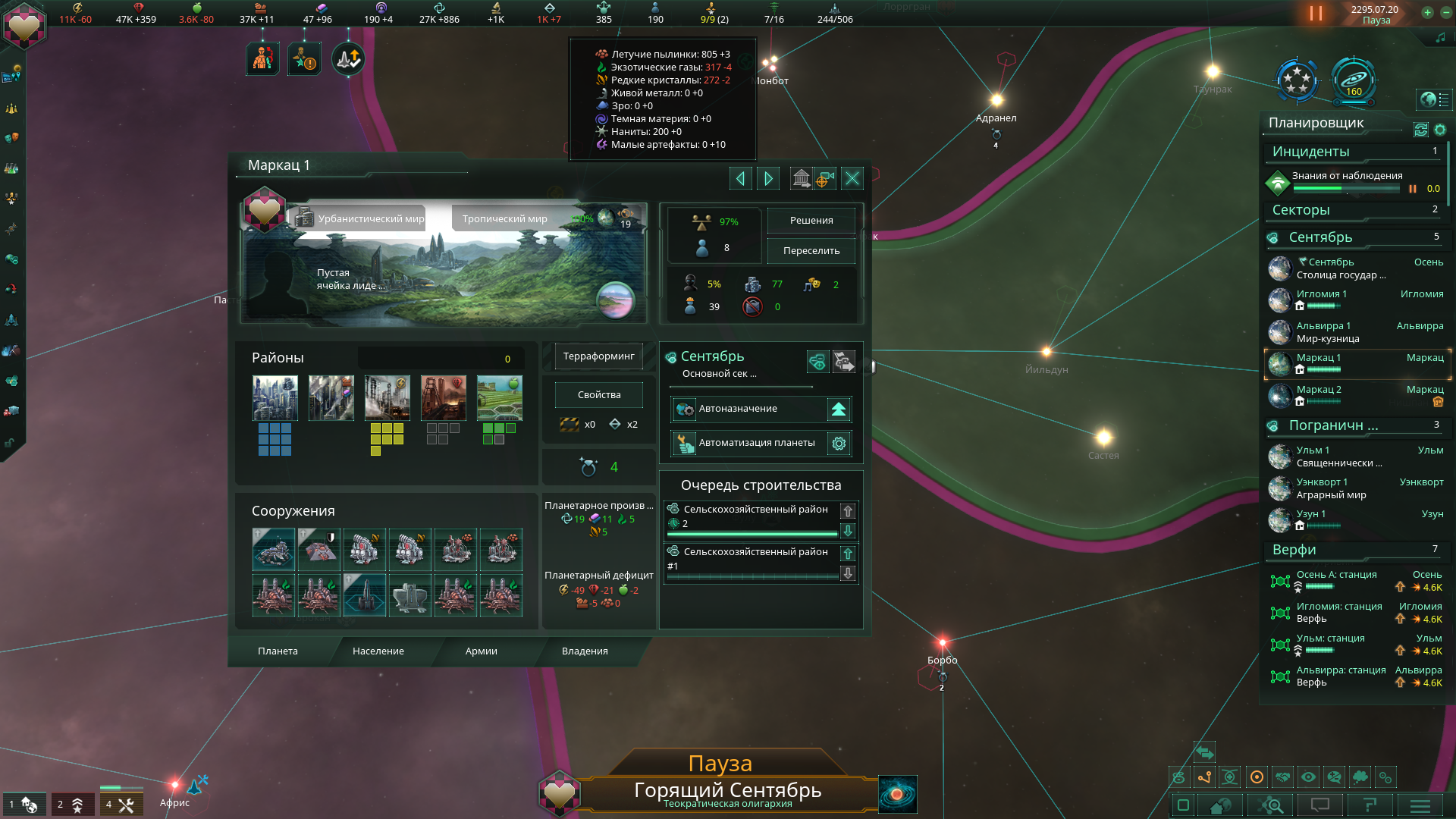 >я эту планету собираюсь оставлять Научным центром Там архивы и производство. Нормально никак не сделать если одна планета. Сам обычно вторую специализирую под сплавы и хозтовары, а третью под единство. Столица только под навуку.