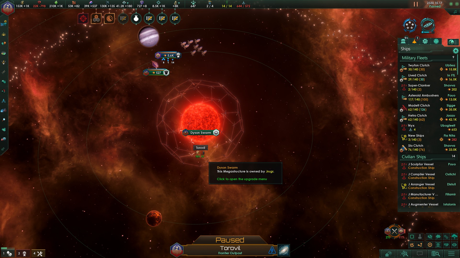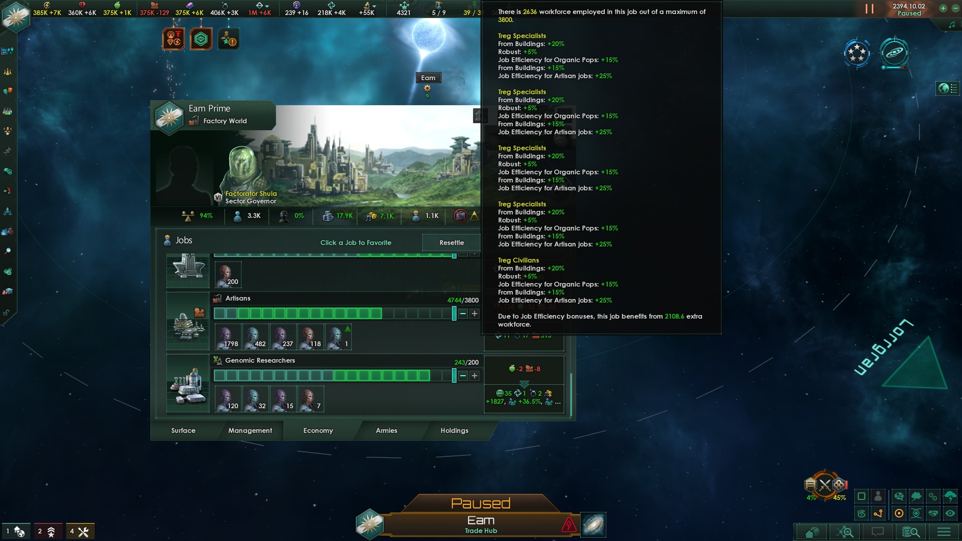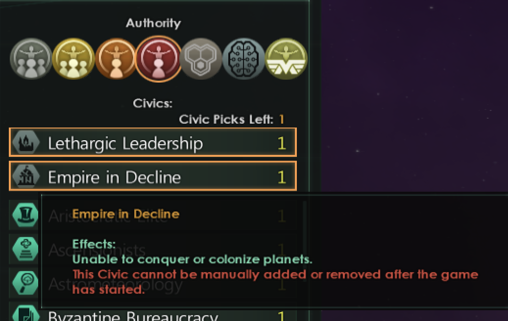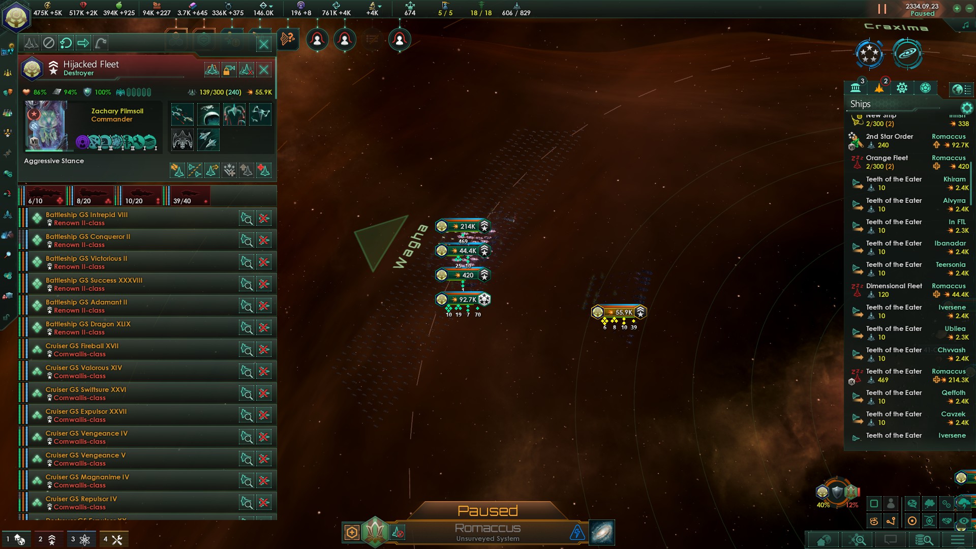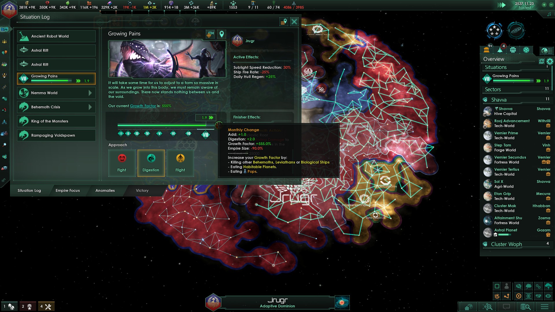 >>1291868 Перенос столицы - скорее всего дело в секторах, столица будет столицей столичного сектора, а столица сектора не может быть слишком близко к столице другого сектора. Попробуй временно удалить сектор(а) поблизости от твоей будущей столицы. Завершитель цикла выпадает с очень маленьким шансом, надо или очень много играть или сейвскамить как сука. Я помню из какого-то патчноута что шанс завершителя увеличивается в пять раз если в галактике кто-то (не ты) взял перк кризиса, не знаю актуально ли это еще. Само сообщение о завершителе выглядит как предложение пиздец могущества +100% ко всему с намёком что цена будет страшной, у кнопки согласия написано красным "не делай этого".