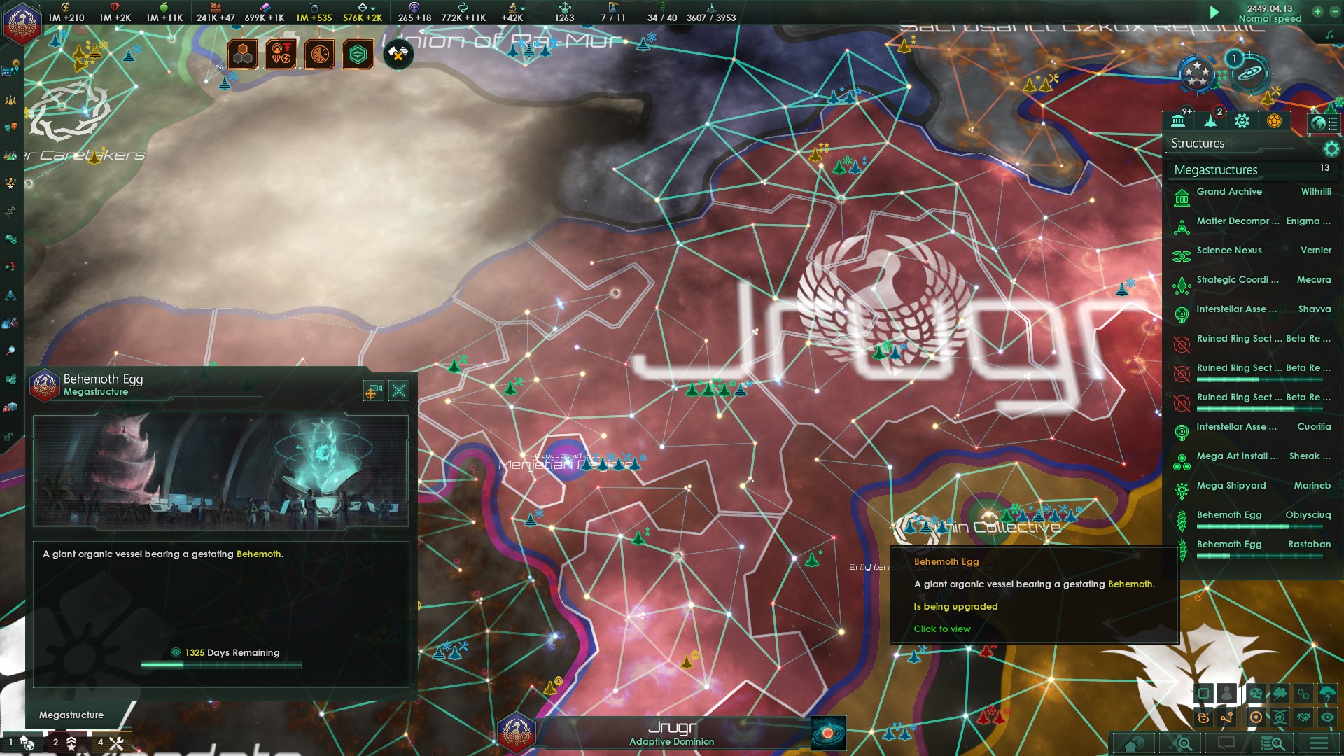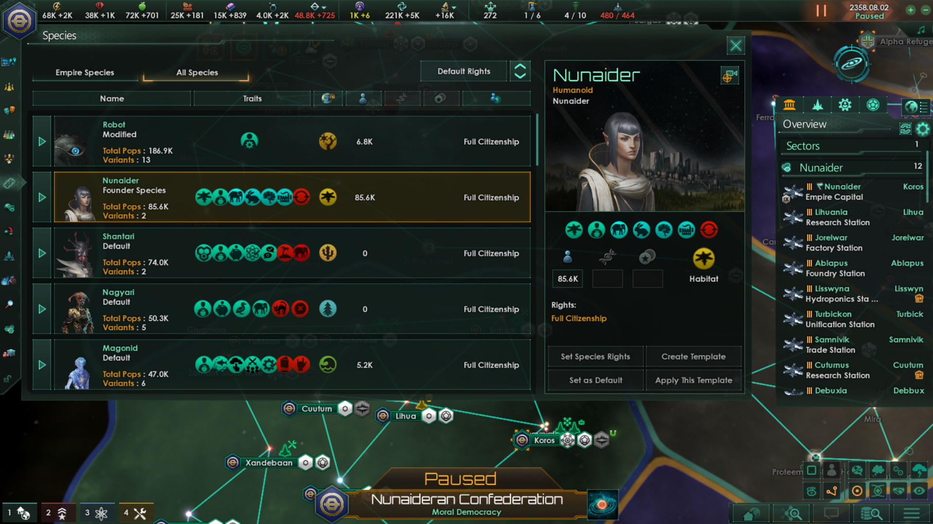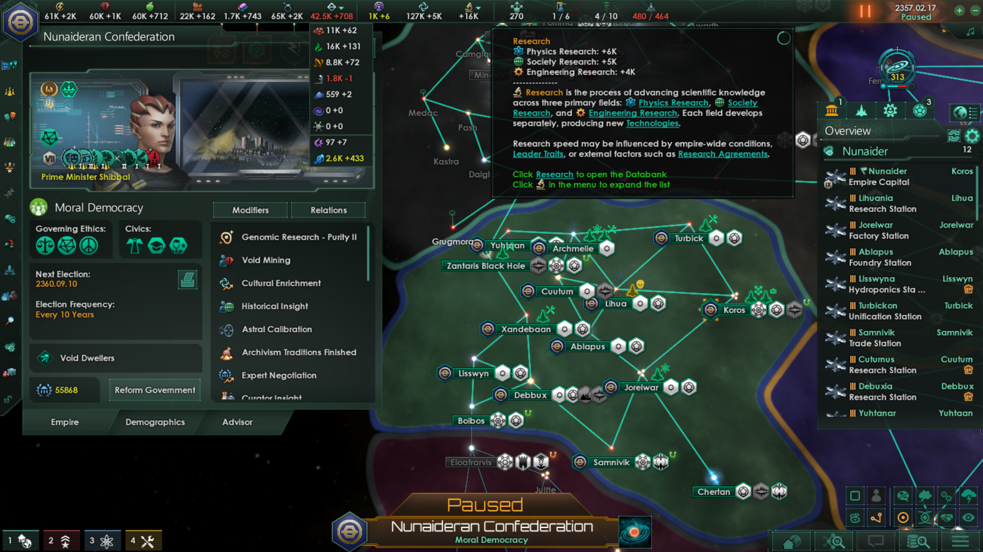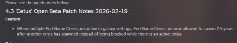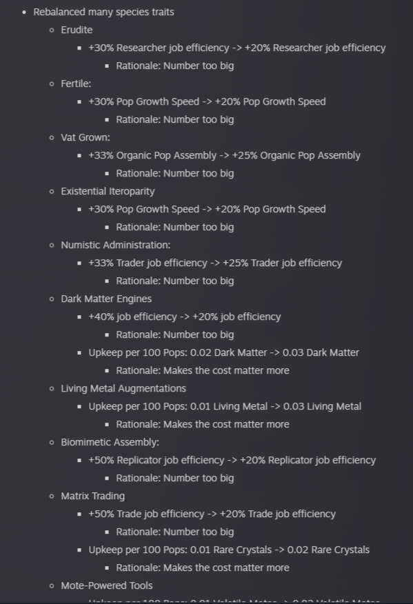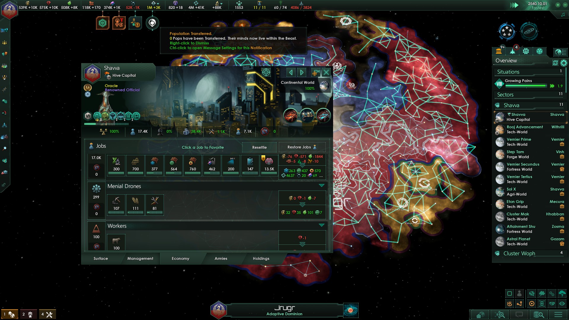 >>1291868 Перенос столицы - скорее всего дело в секторах, столица будет столицей столичного сектора, а столица сектора не может быть слишком близко к столице другого сектора. Попробуй временно удалить сектор(а) поблизости от твоей будущей столицы. Завершитель цикла выпадает с очень маленьким шансом, надо или очень много играть или сейвскамить как сука. Я помню из какого-то патчноута что шанс завершителя увеличивается в пять раз если в галактике кто-то (не ты) взял перк кризиса, не знаю актуально ли это еще. Само сообщение о завершителе выглядит как предложение пиздец могущества +100% ко всему с намёком что цена будет страшной, у кнопки согласия написано красным "не делай этого".