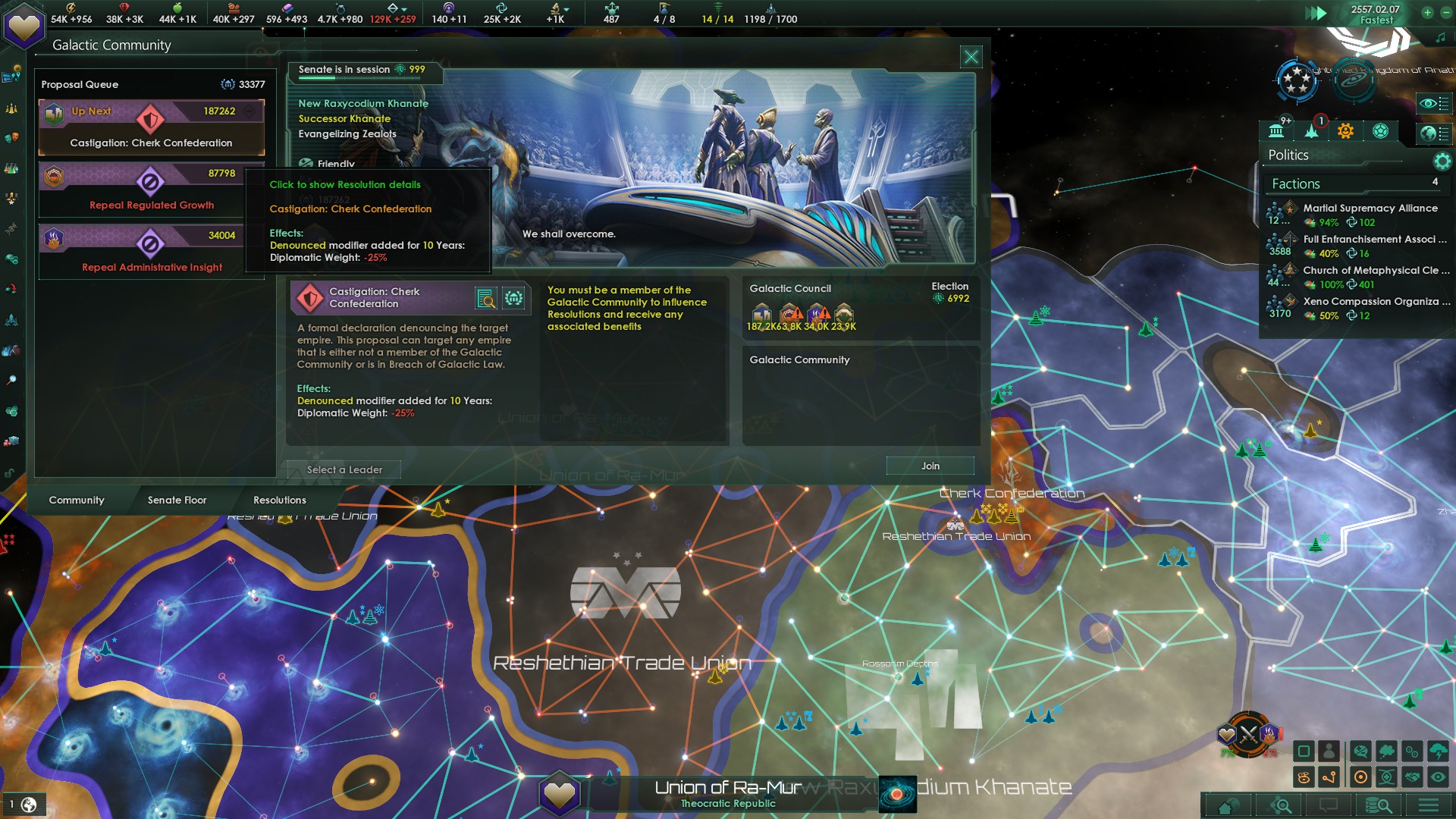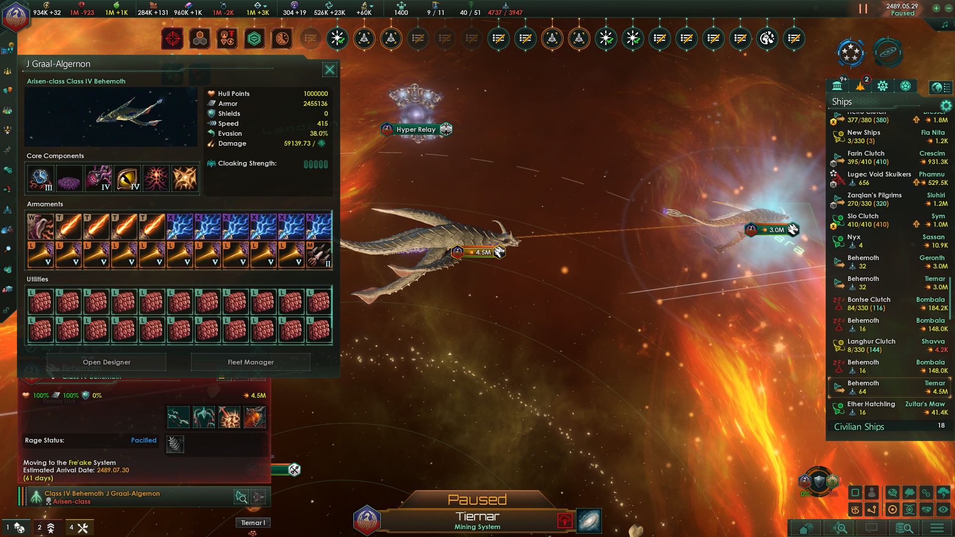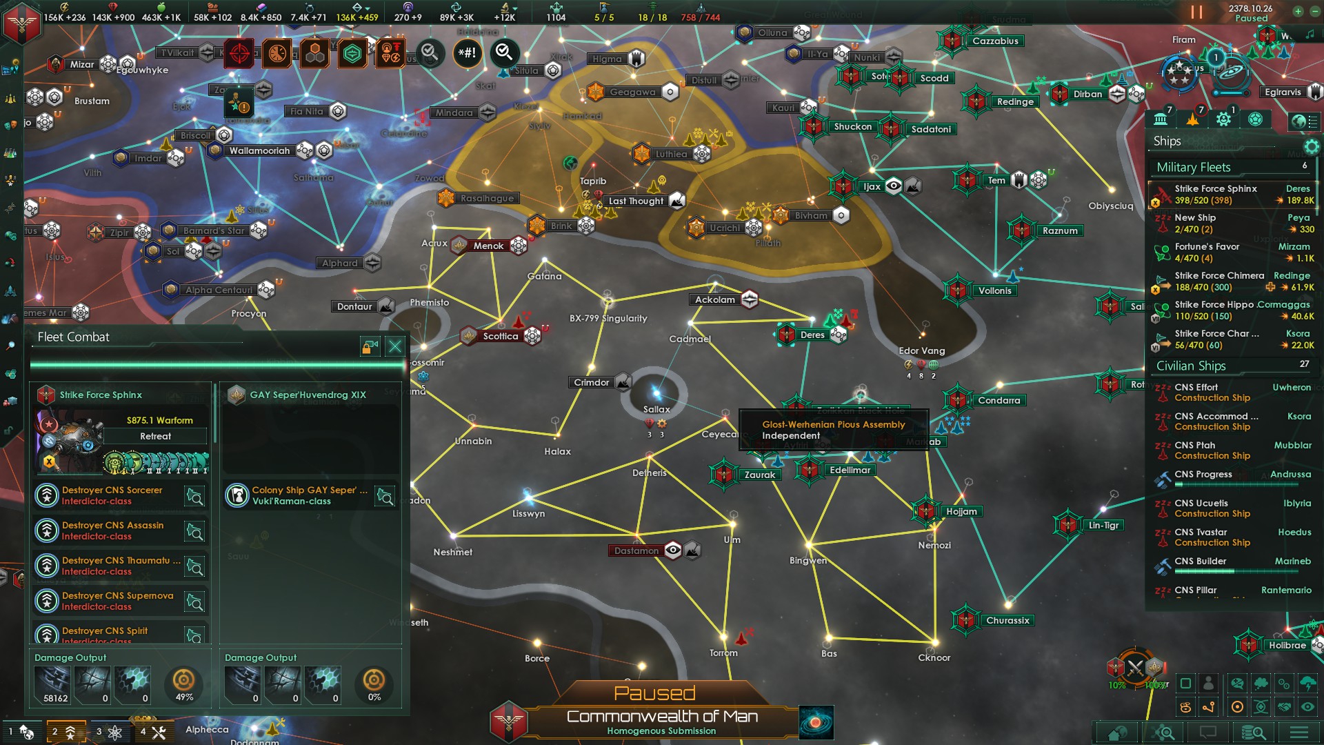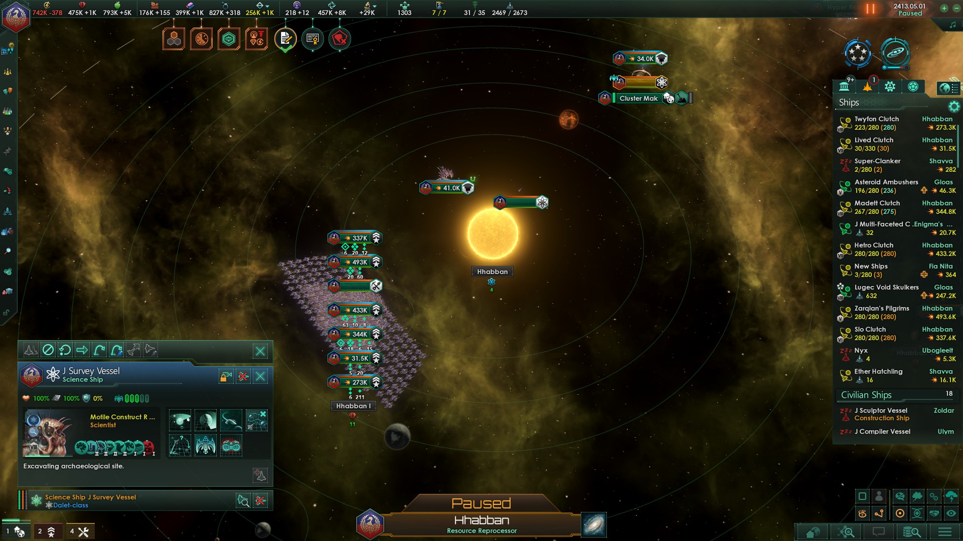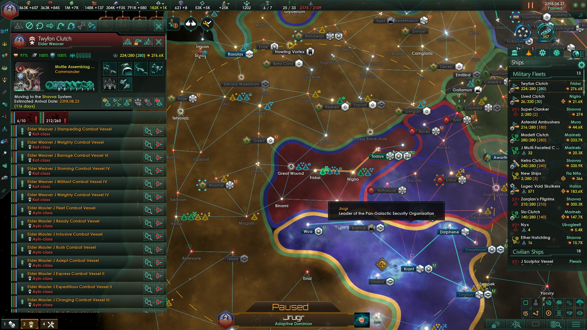 >>1291868 Перенос столицы - скорее всего дело в секторах, столица будет столицей столичного сектора, а столица сектора не может быть слишком близко к столице другого сектора. Попробуй временно удалить сектор(а) поблизости от твоей будущей столицы. Завершитель цикла выпадает с очень маленьким шансом, надо или очень много играть или сейвскамить как сука. Я помню из какого-то патчноута что шанс завершителя увеличивается в пять раз если в галактике кто-то (не ты) взял перк кризиса, не знаю актуально ли это еще. Само сообщение о завершителе выглядит как предложение пиздец могущества +100% ко всему с намёком что цена будет страшной, у кнопки согласия написано красным "не делай этого".