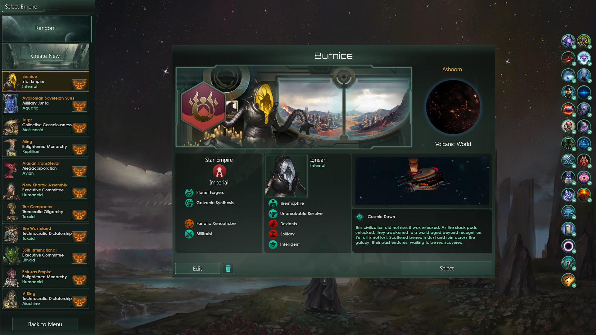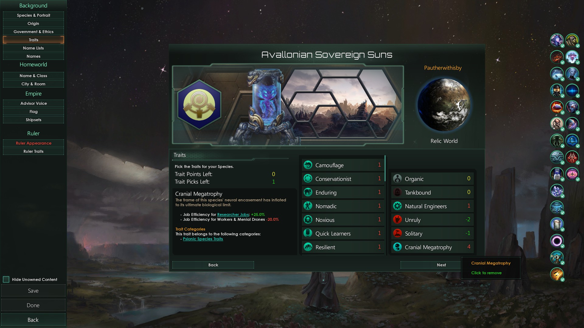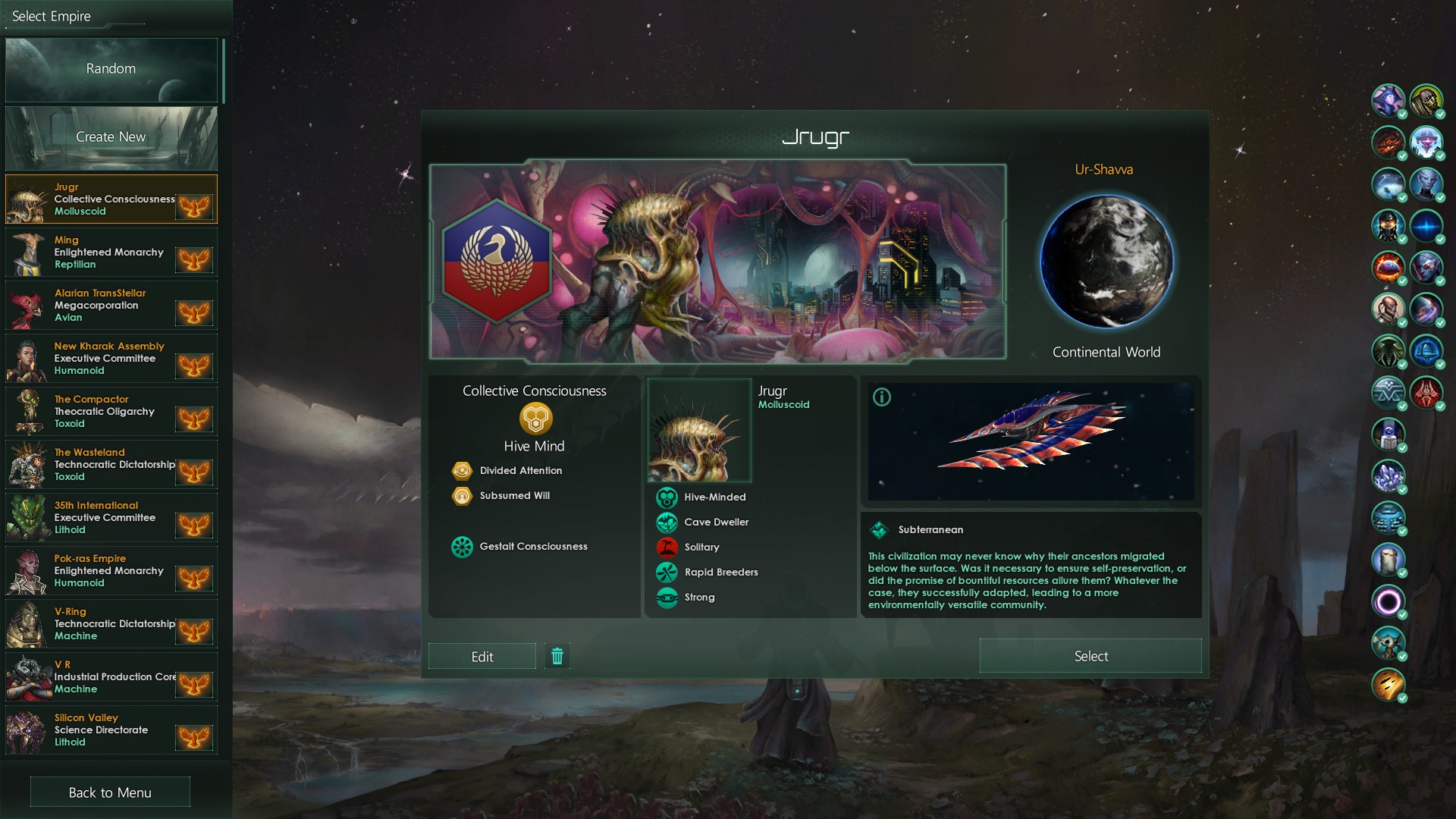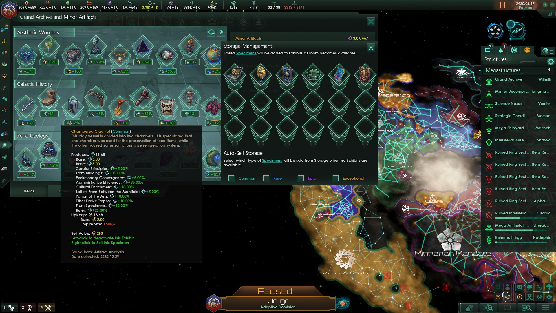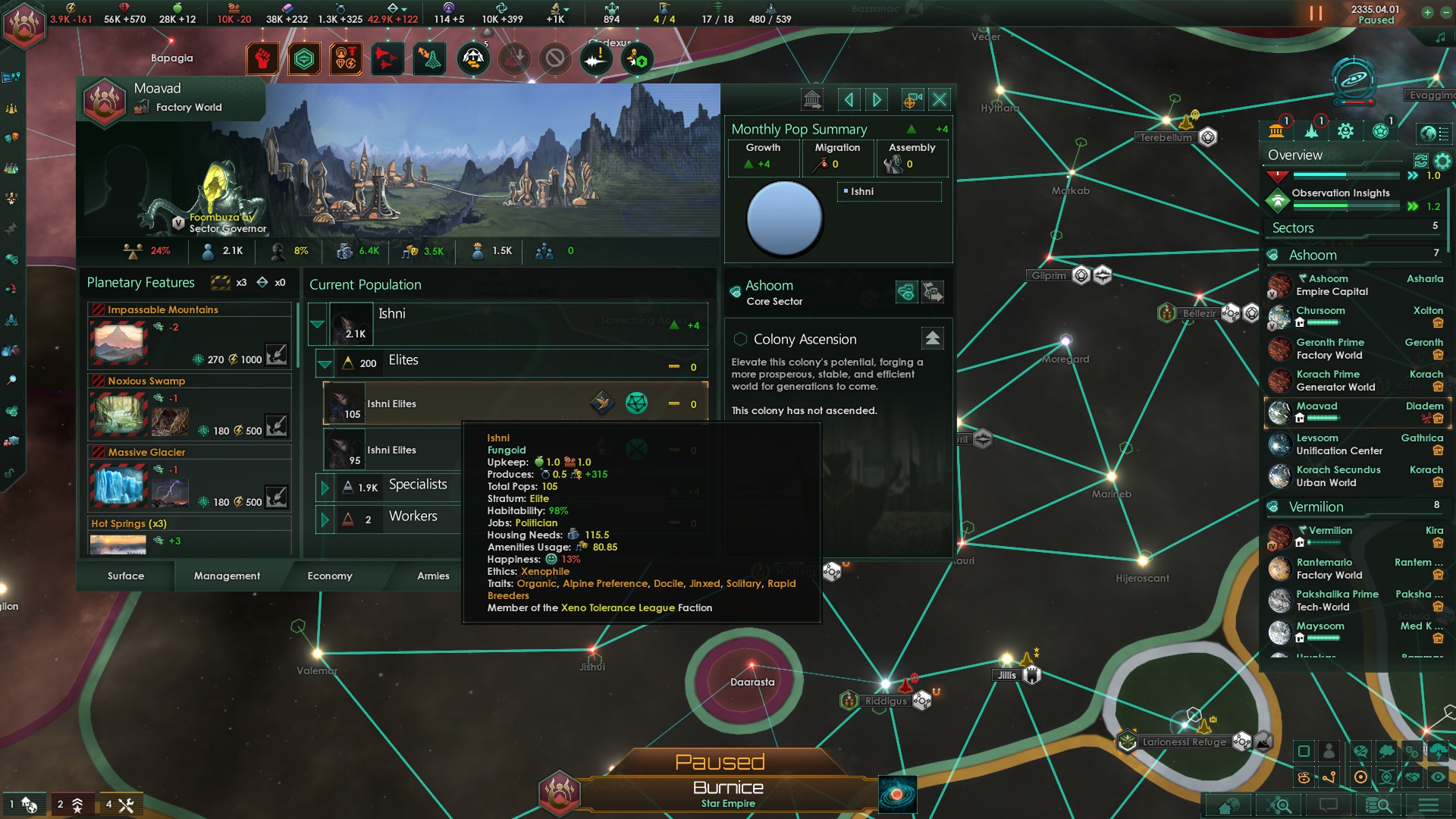 >>1291868 Перенос столицы - скорее всего дело в секторах, столица будет столицей столичного сектора, а столица сектора не может быть слишком близко к столице другого сектора. Попробуй временно удалить сектор(а) поблизости от твоей будущей столицы. Завершитель цикла выпадает с очень маленьким шансом, надо или очень много играть или сейвскамить как сука. Я помню из какого-то патчноута что шанс завершителя увеличивается в пять раз если в галактике кто-то (не ты) взял перк кризиса, не знаю актуально ли это еще. Само сообщение о завершителе выглядит как предложение пиздец могущества +100% ко всему с намёком что цена будет страшной, у кнопки согласия написано красным "не делай этого".